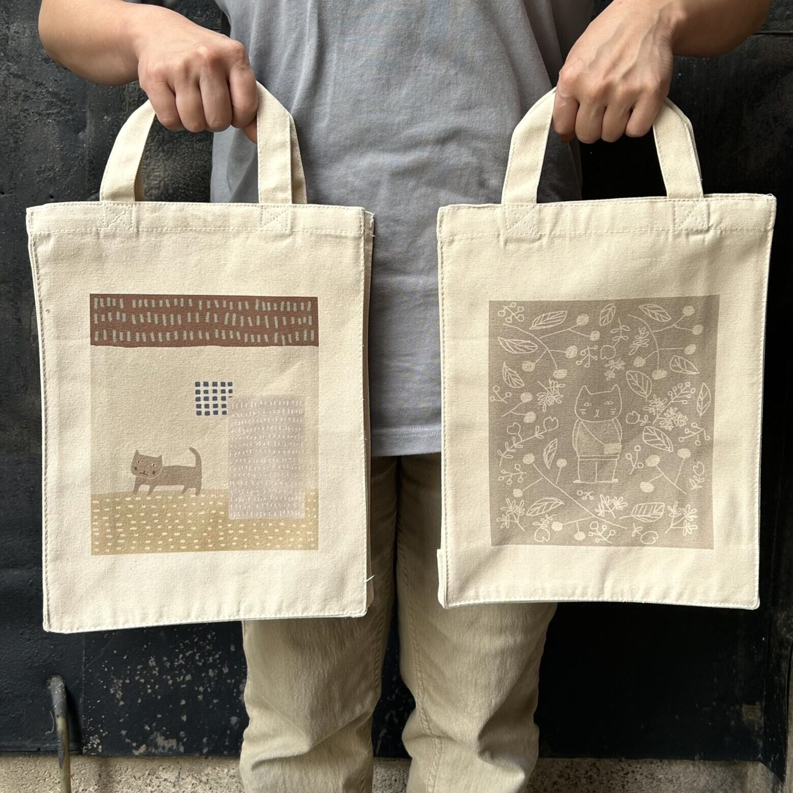 トートバッグ ねこと花 Z-2006-A コットン 12oz