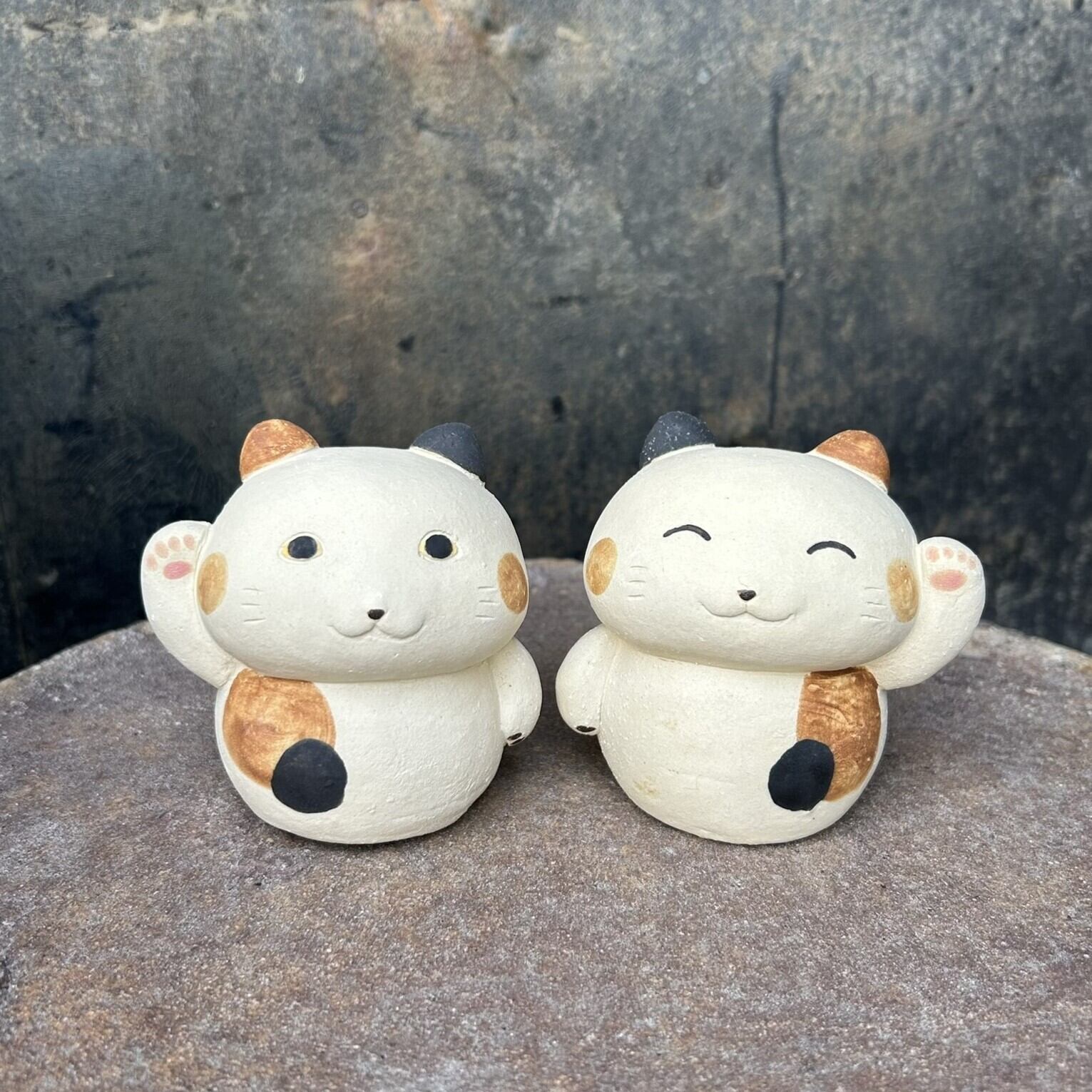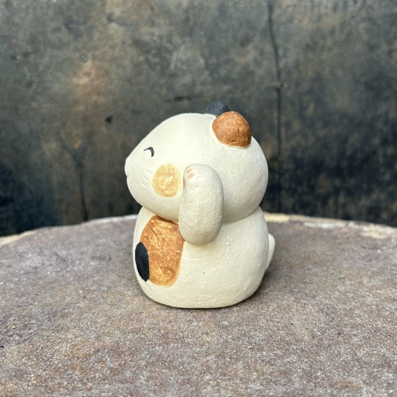 陶製のまねき猫の置物です。手作りの為、1点1点 形、色などが画像と多少違いがあります。
