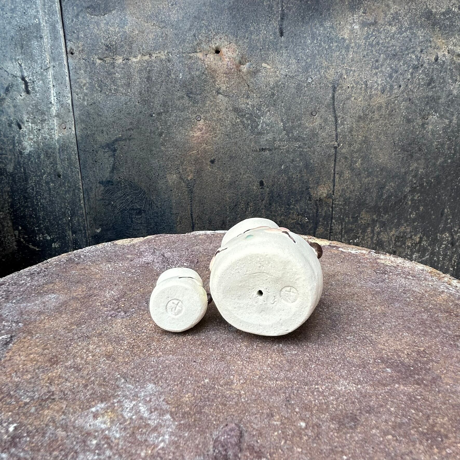 陶製の 干支 午 の置物です。手作りの為、1点1点 形、色などが画像と多少違いがあります。 親高さ 8cm位 子高さ 3.5cm位