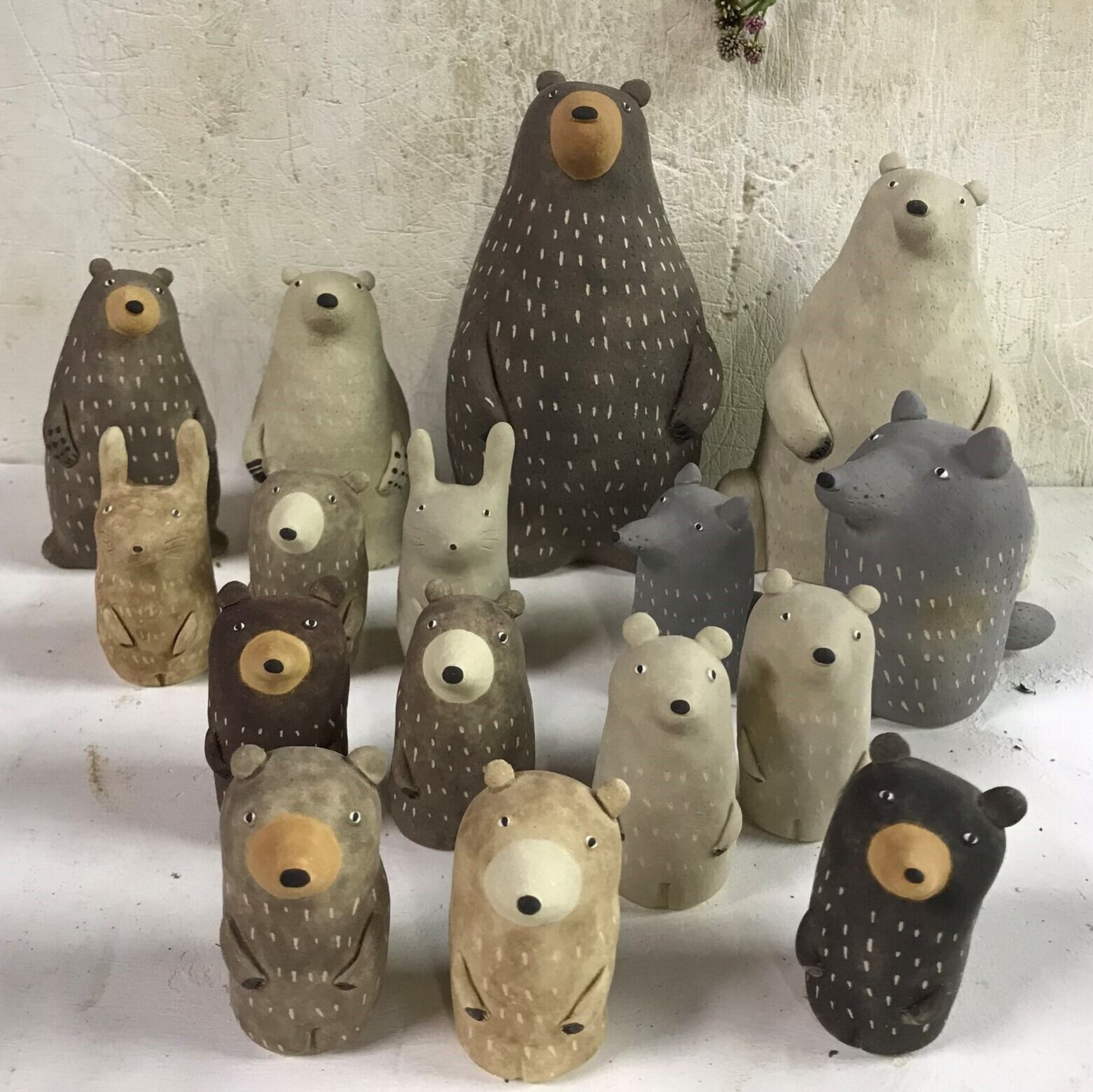 It is a ceramic bear figurine. Because it is handmade, the shape and color of each item may differ slightly from the image. Height about 6 cm