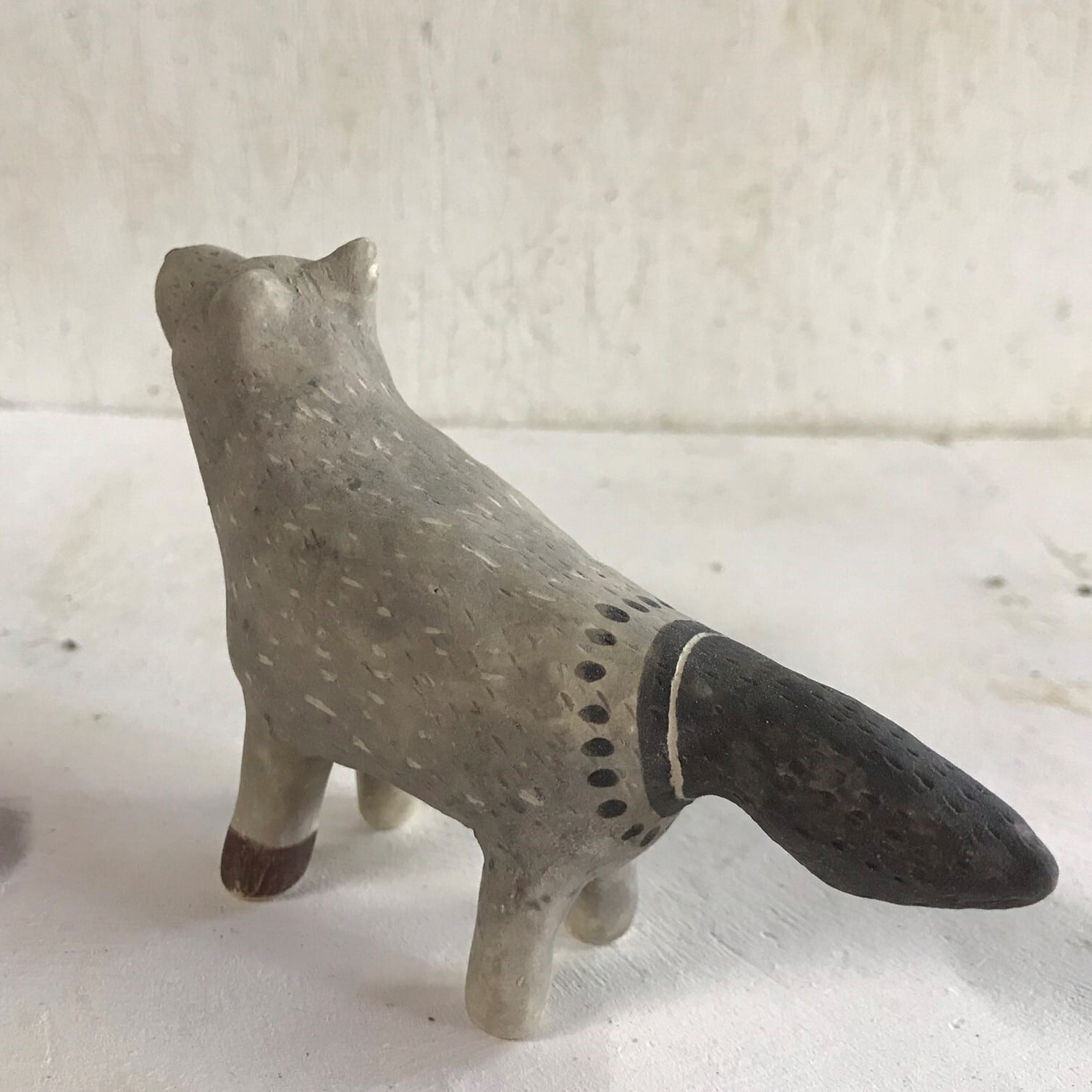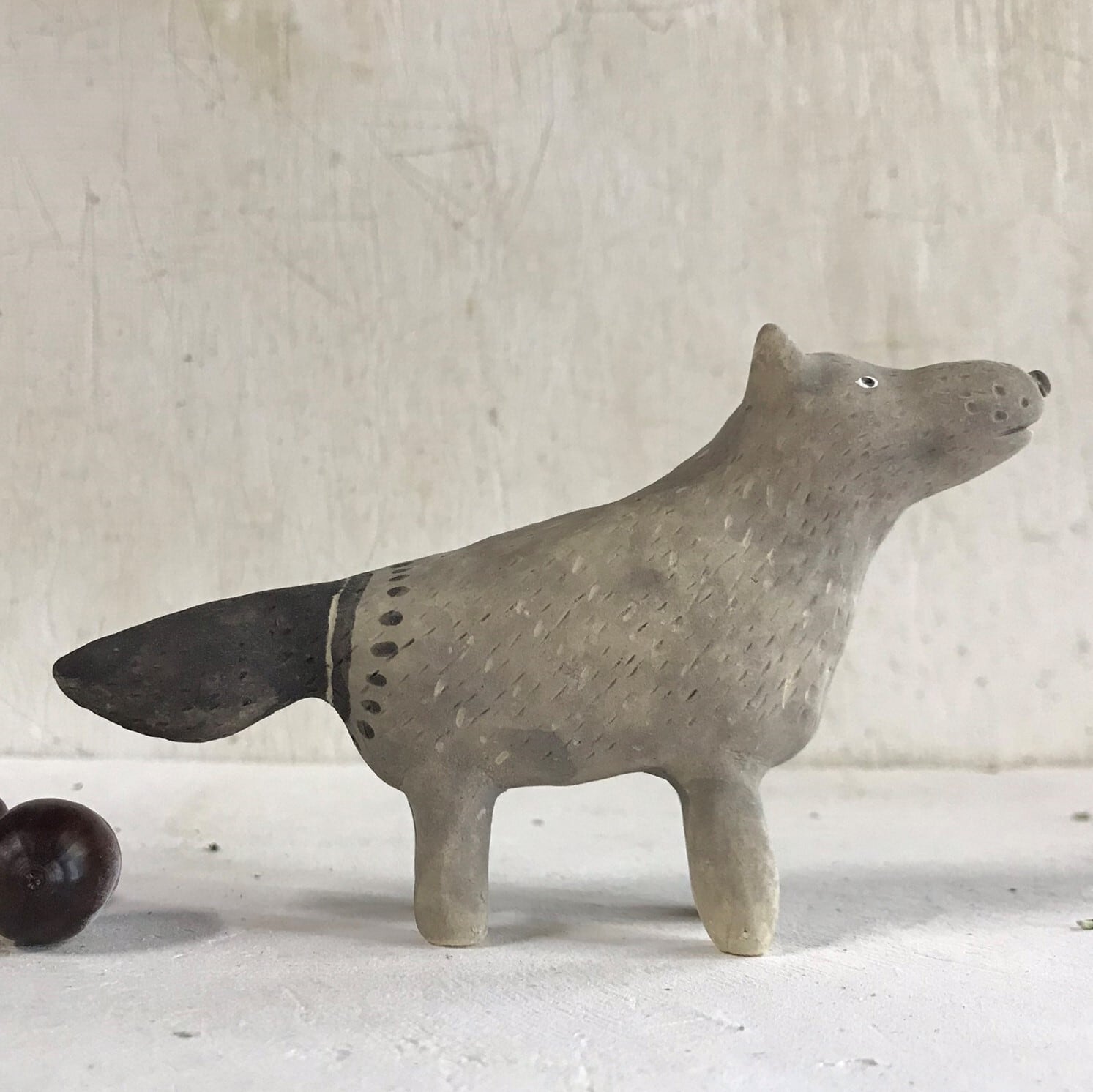 It is a porcelain wolf figurine. Because it is handmade, the shape and color of each item may differ slightly from the image. About 12 cm in length