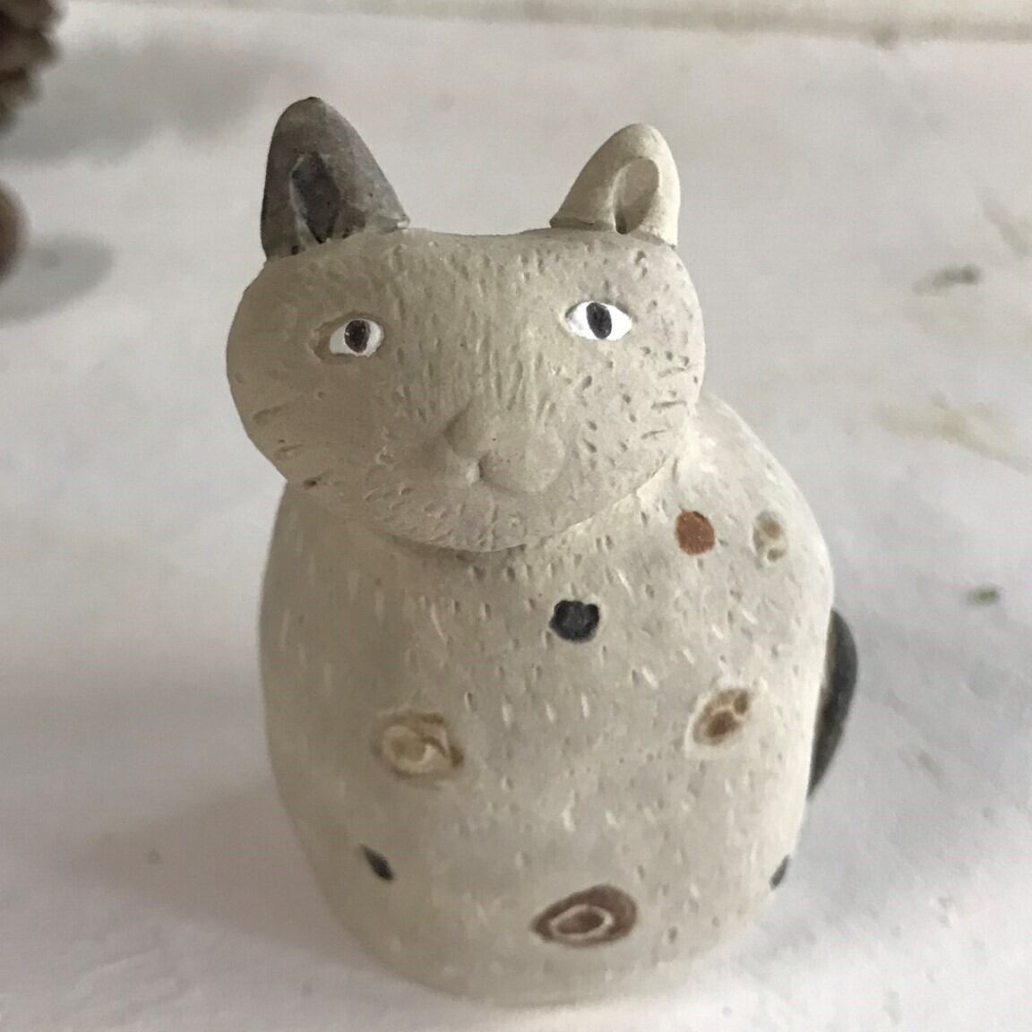 It is a figurine of a ceramic cat. Because it is handmade, the shape and color of each item may differ slightly from the image. Height about 7 cm