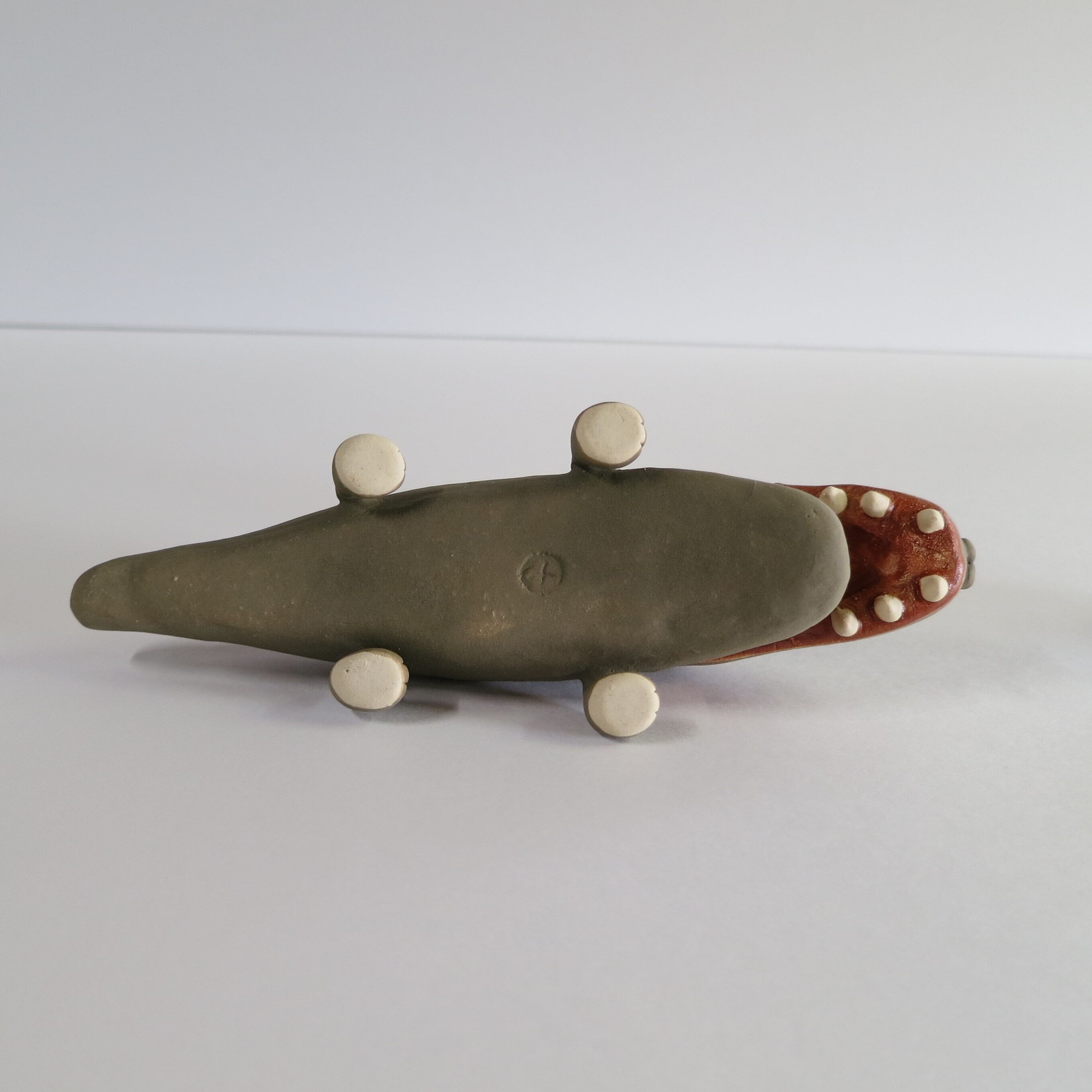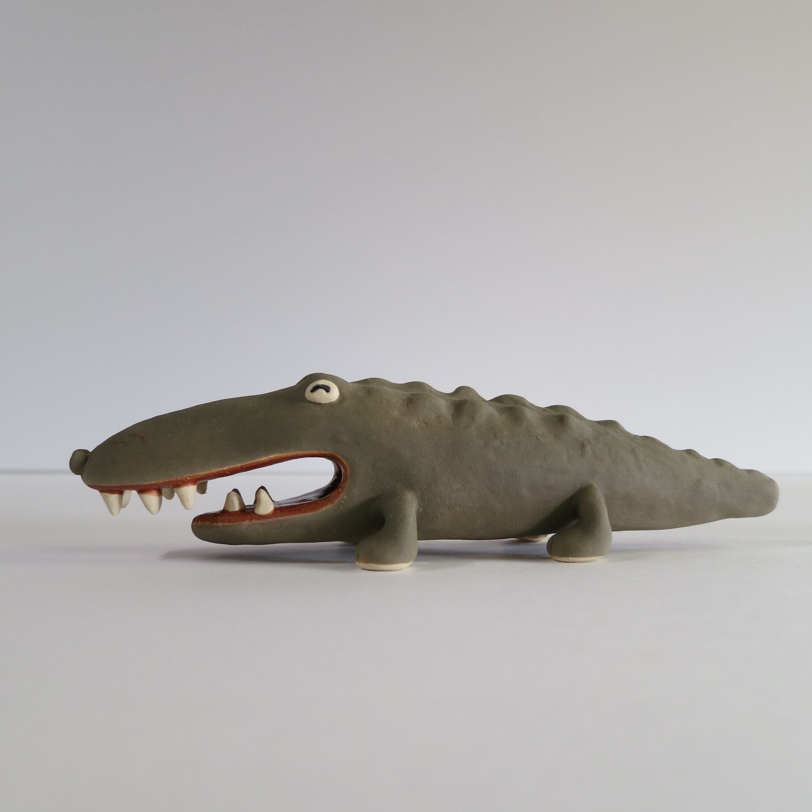 陶製のわにの置物です。手作りの為、1点1点 形、色などが画像と多少違いがあります。 長さ 19cm位