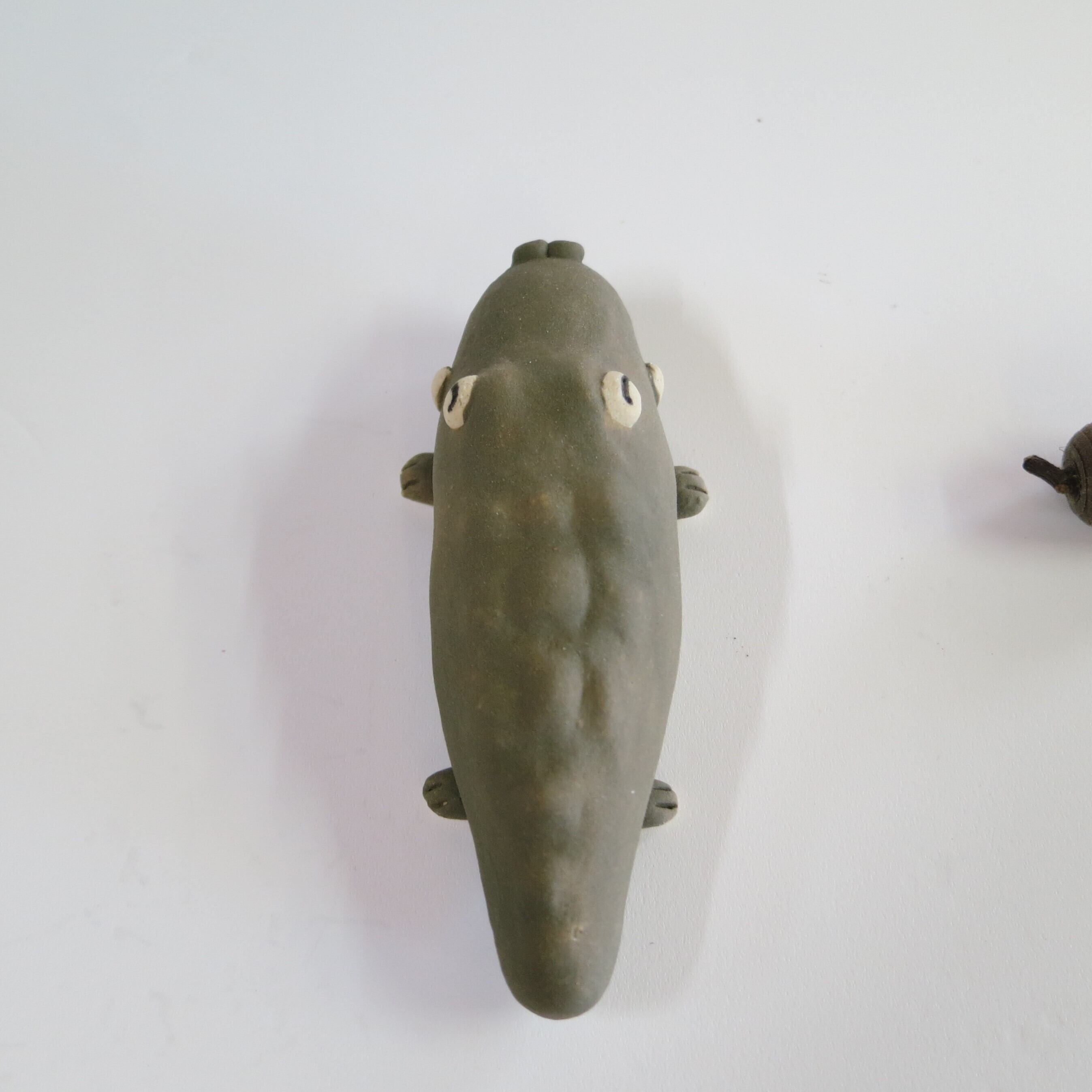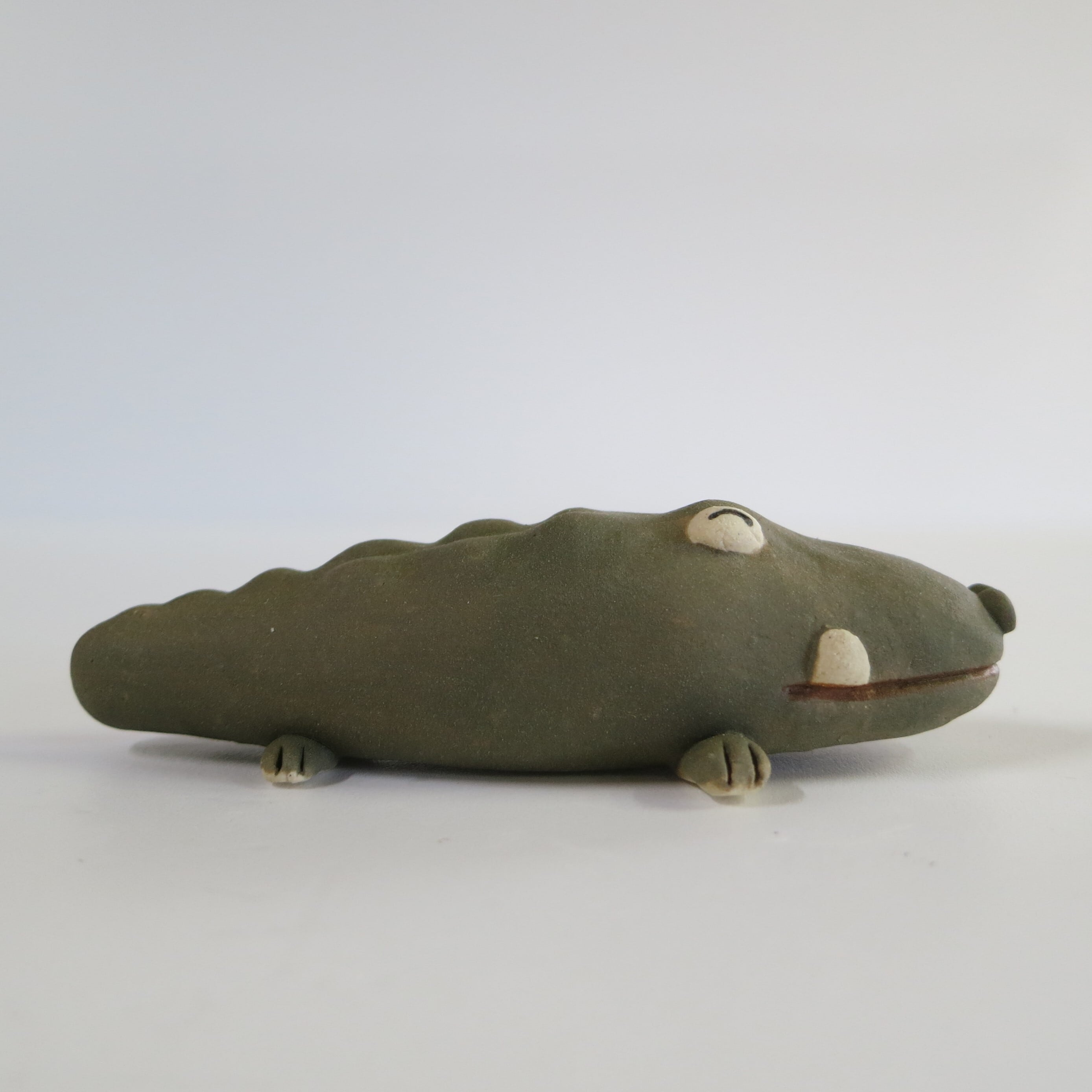 It is a ceramic crocodile figurine. Because it is handmade, the shape and color of each item may differ slightly from the image. About 9 cm in length