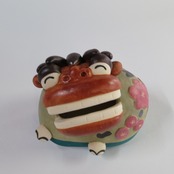 陶製のししまいの置物です。手作りの為、1点1点 形、色などが画像と多少違いがあります。 高さ 10.5cm位