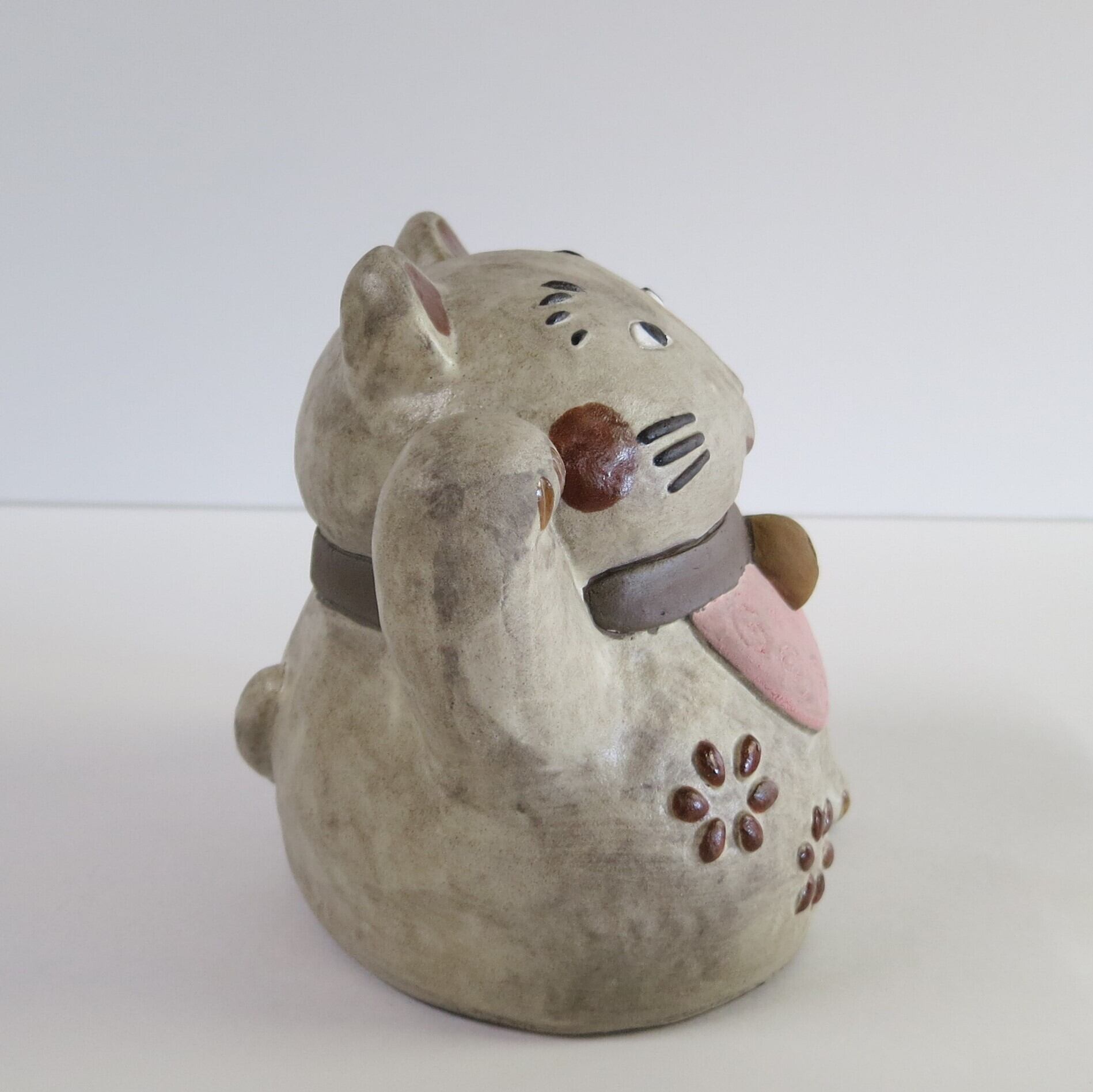 It is a figurine of a ceramic beckoning cat. Because it is handmade, the shape and color of each item may differ slightly from the image.