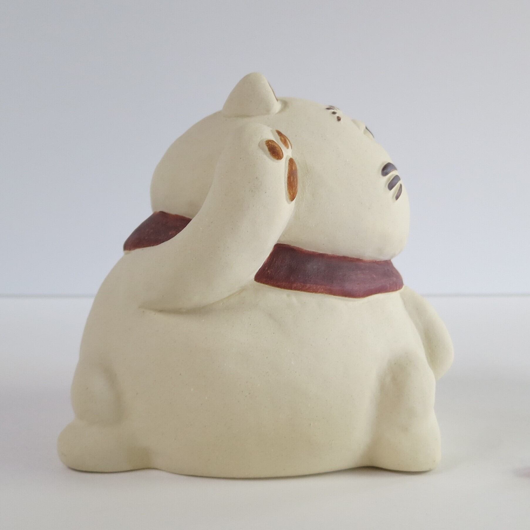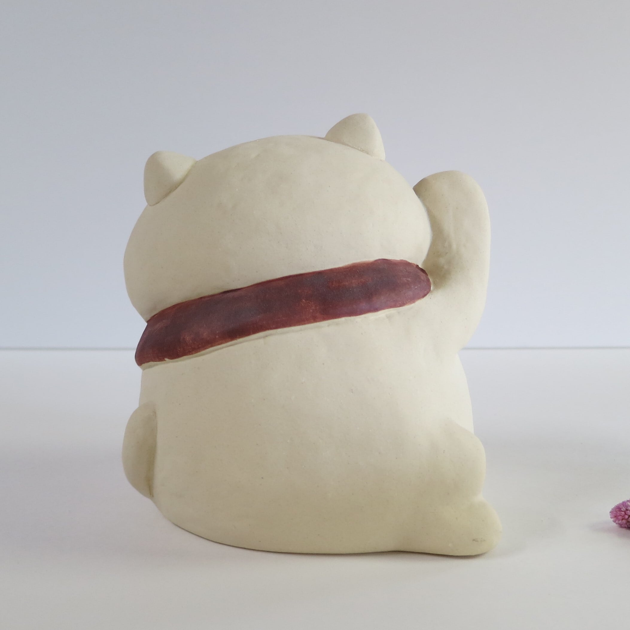 It is a figurine of a ceramic beckoning cat. Because it is handmade, the shape and color of each item may differ slightly from the image.
