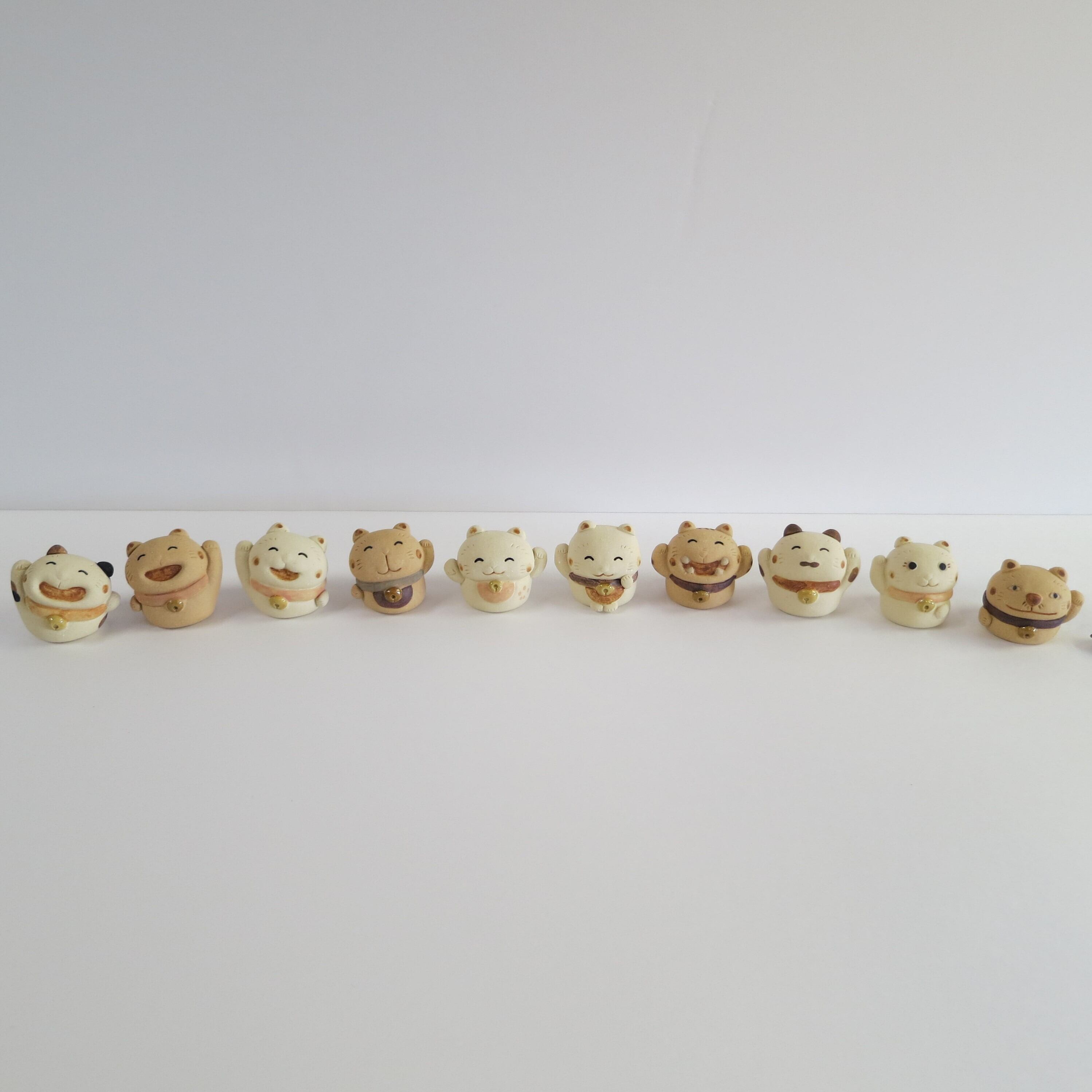 陶製のまねき猫の置物です。手作りの為、1点1点 形、色などが画像と多少違いがあります。