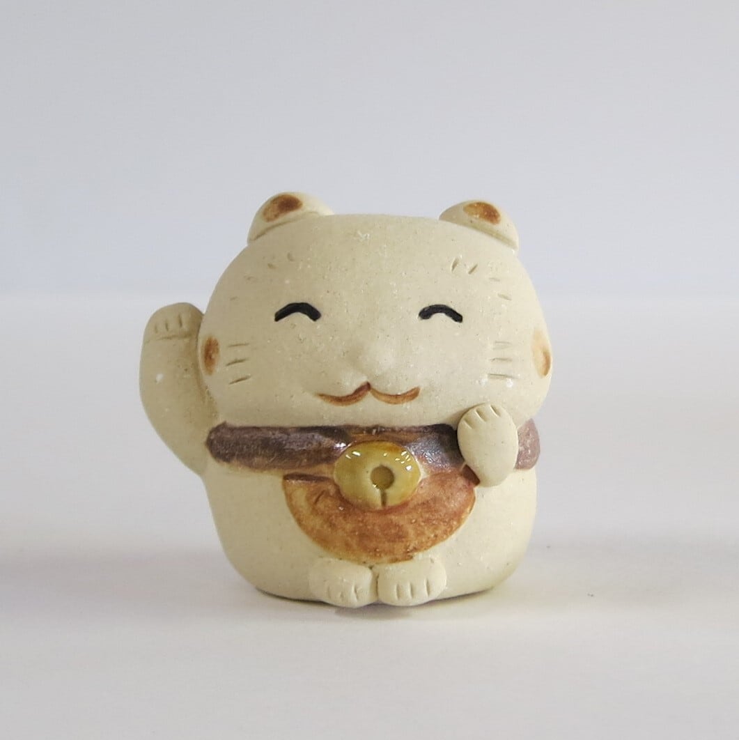 It is a figurine of a ceramic beckoning cat. Because it is handmade, the shape and color of each item may differ slightly from the image.