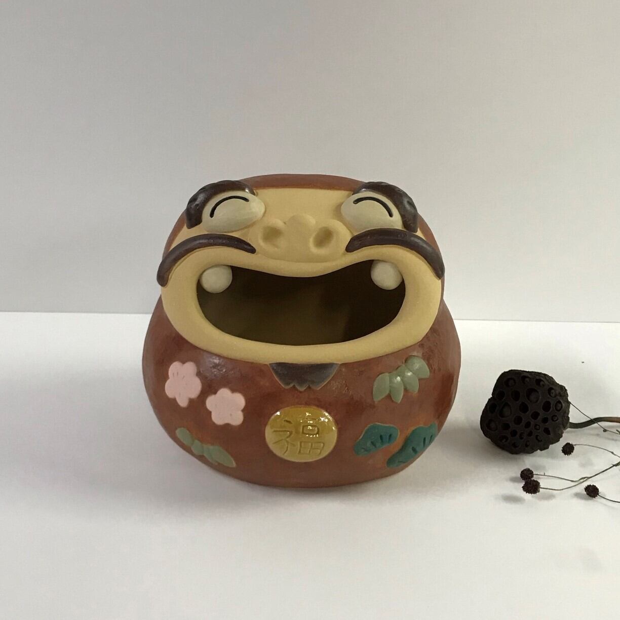 It is a figurine of a ceramic Daruma doll. Because it is handmade, the shape and color of each item may differ slightly from the image. Height about 20 cm