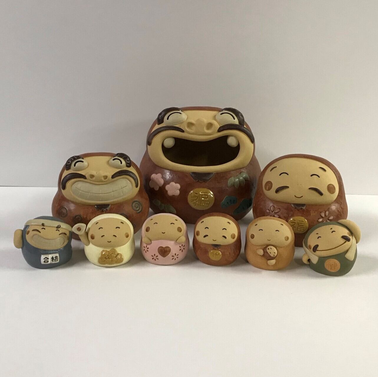 陶製のだるまの置物です。手作りの為、1点1点 形、色などが画像と多少違いがあります。