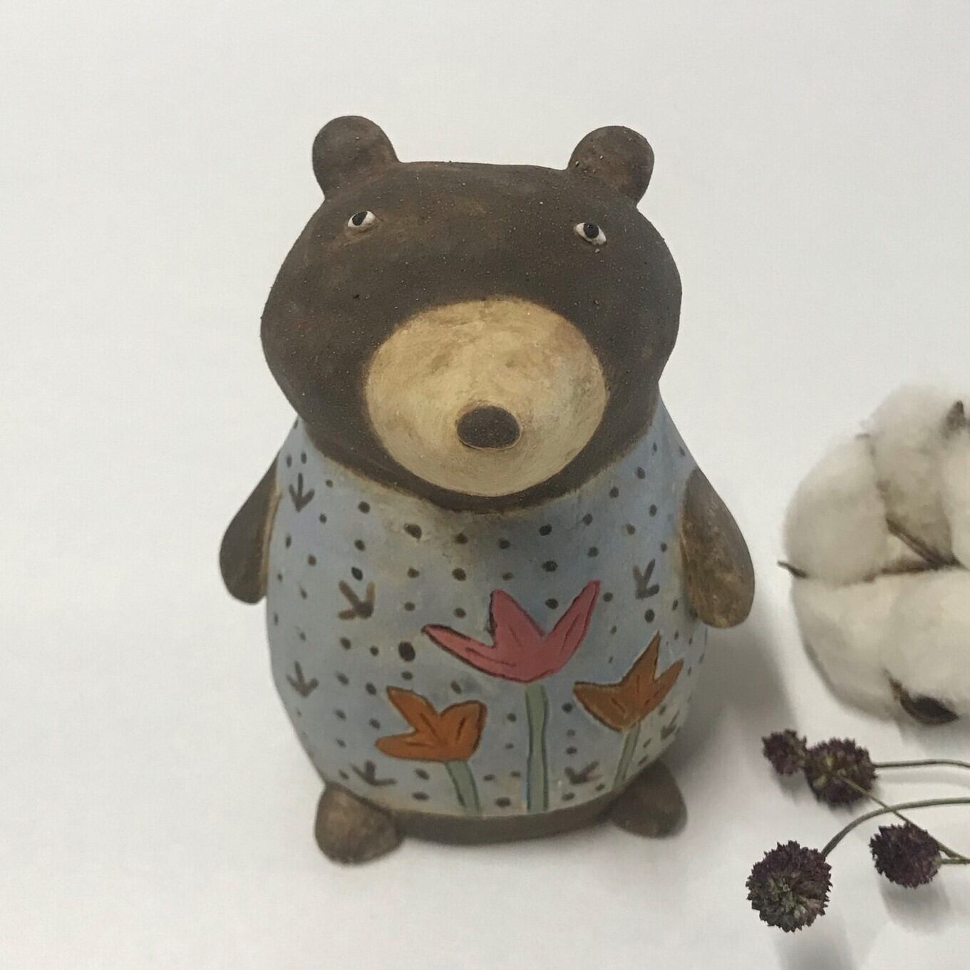 It is a figurine of a ceramic bear. Because it is handmade, the shape and color of each item may differ slightly from the image. Height about 10 cm
