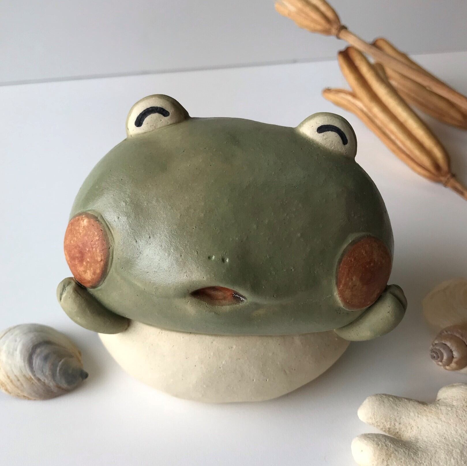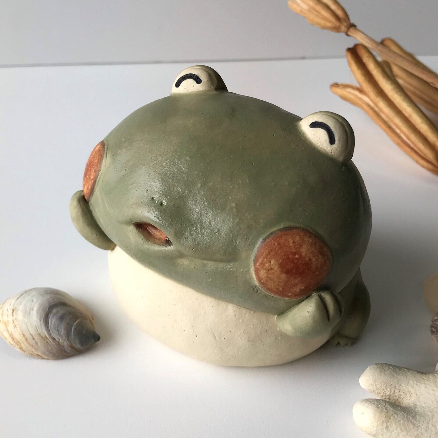 It is a ceramic frog figurine. Because it is handmade, the shape and color of each item may differ slightly from the image. Twice