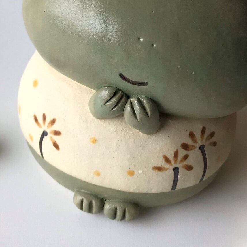 陶製のかえるの置物です。手作りの為、1点1点 形、色などが画像と多少違いがあります。