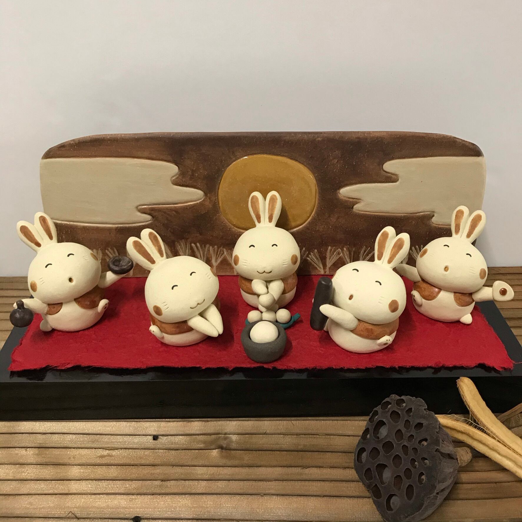 陶製の十五夜の置物です。手作りの為、1点1点 形、色などが画像と多少違いがあります。