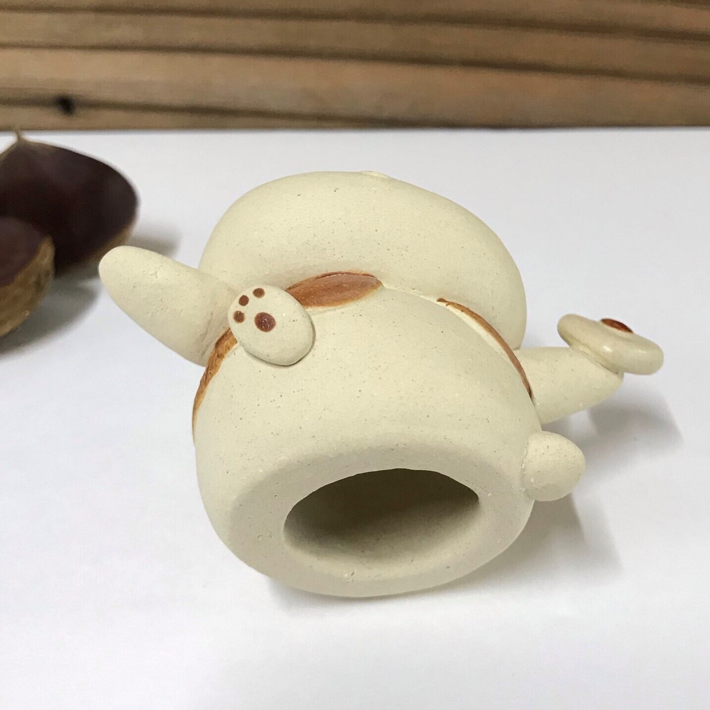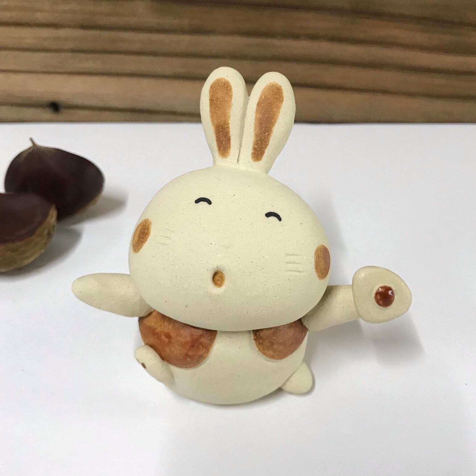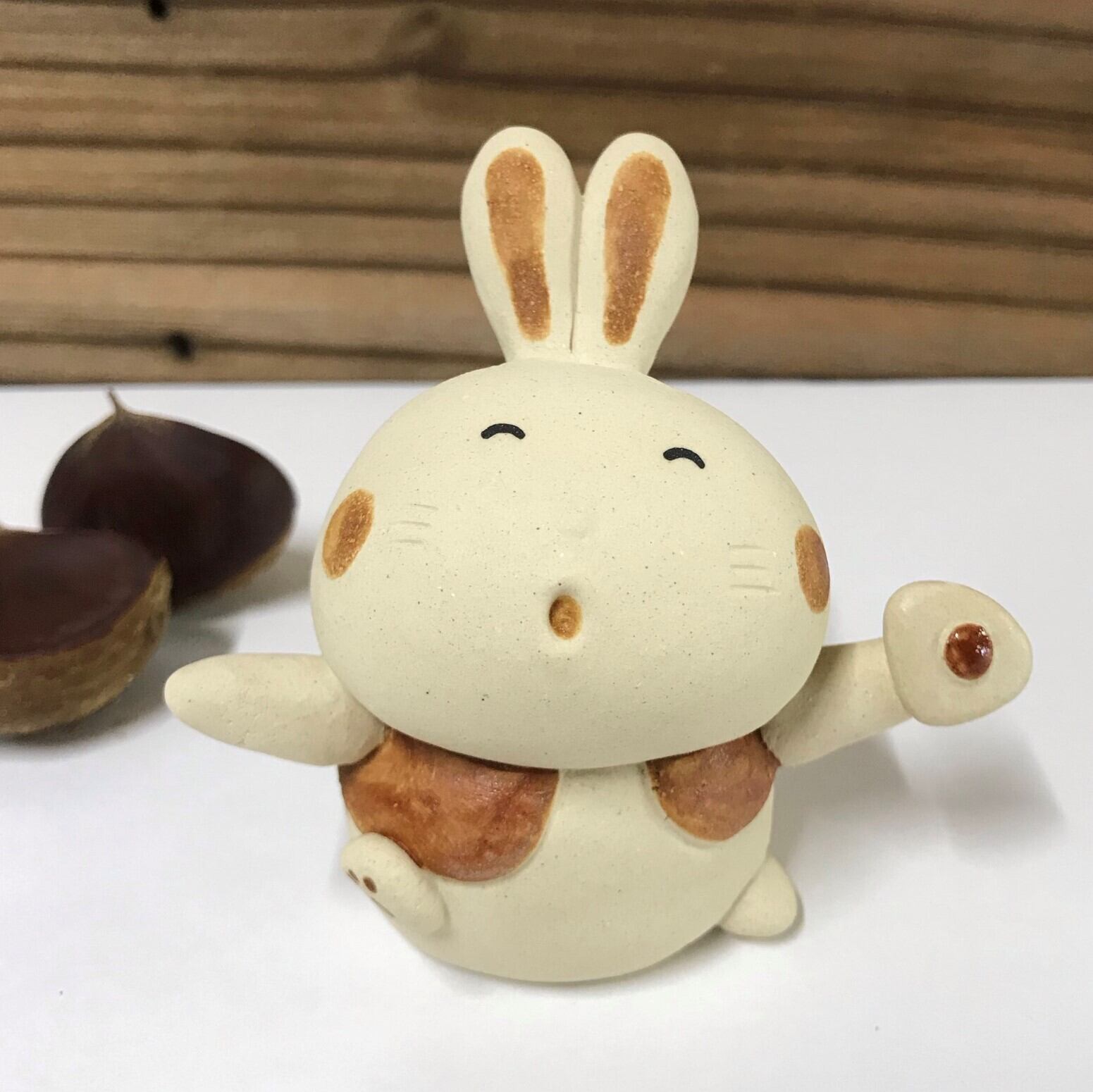 ちっちゃい扇子うさぎ(うさぎのみ) J-129-3 陶製 /Rabbit/兔子