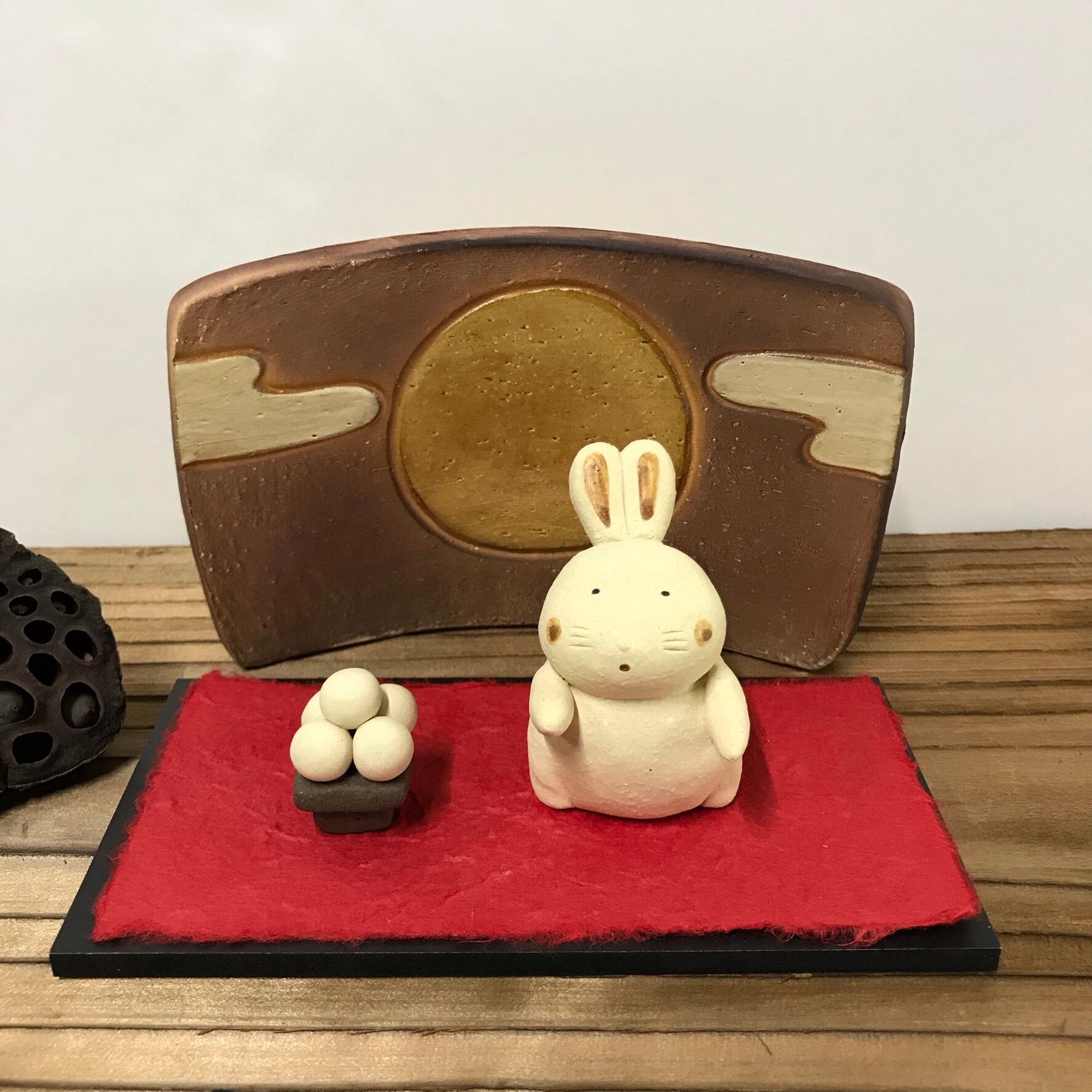 陶製の十五夜の置物です。手作りの為、1点1点 形、色などが画像と多少違いがあります。