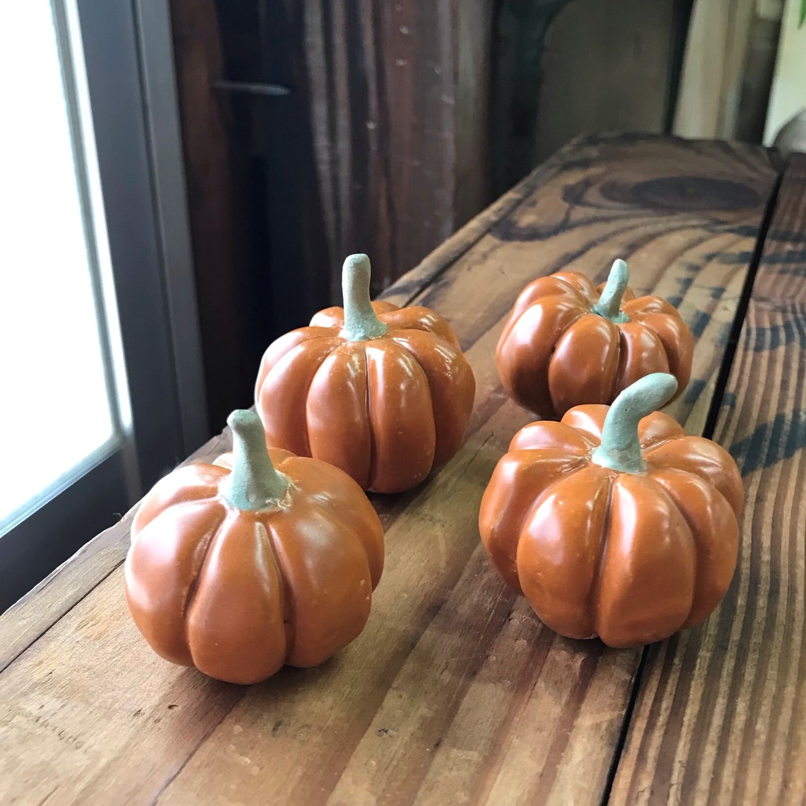 陶製の かぼちゃ の置物です。手作りの為、1点1点 形、色などが画像と多少違いがあります。 高さへた抜き 3cm位