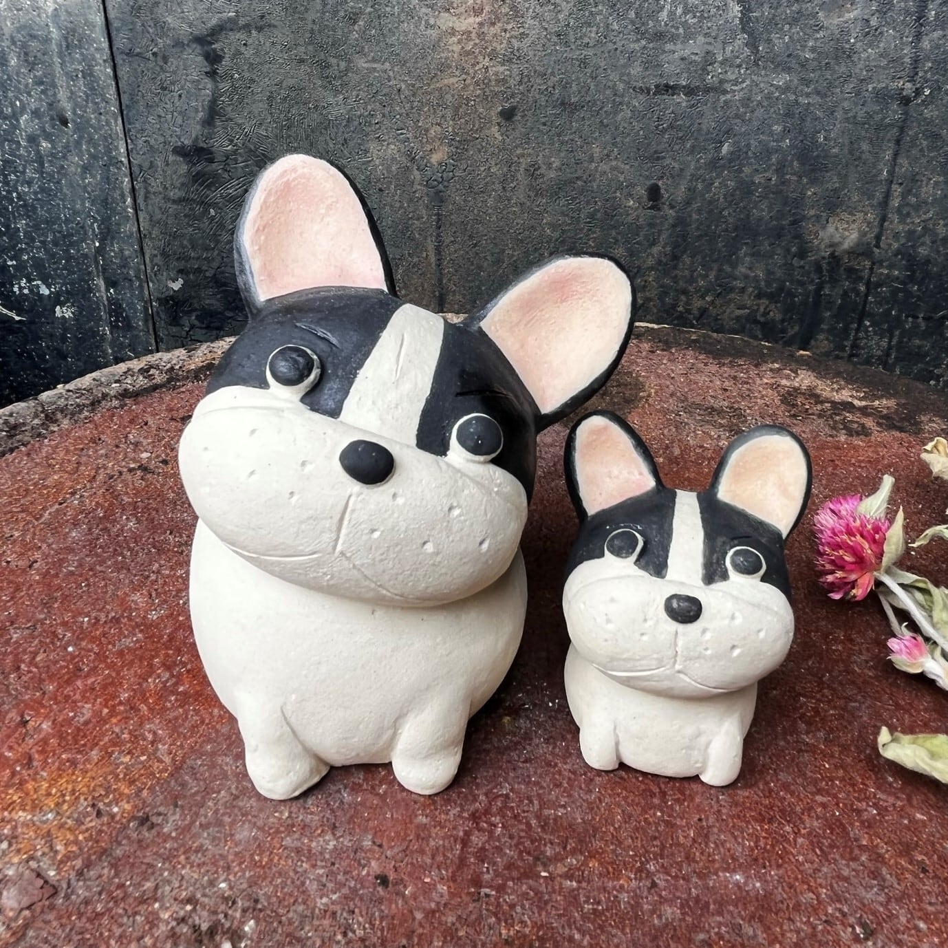 陶製のフレンチブルドッグの置物です。手作りの為、1点1点 形、色などが画像と多少違いがあります。