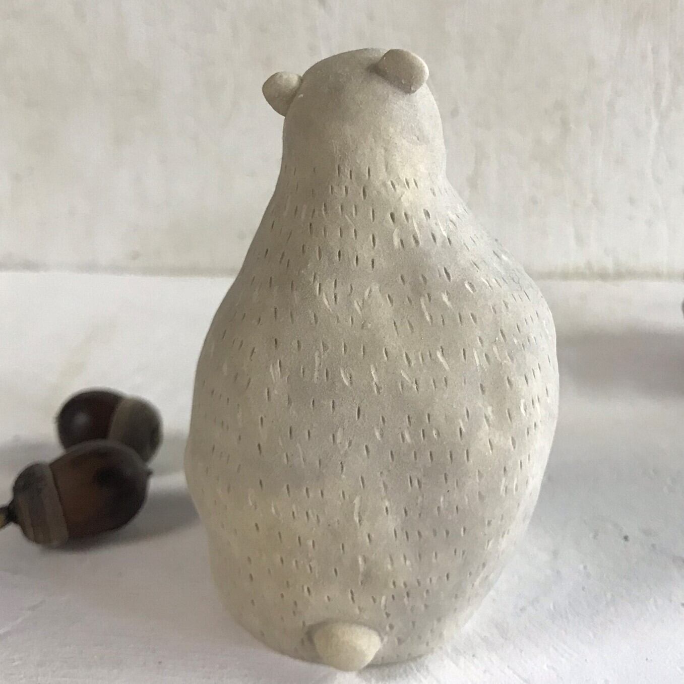 It is a ceramic polar bear figurine. Because it is handmade, the shape and color of each item may differ slightly from the image. Height about 9 cm