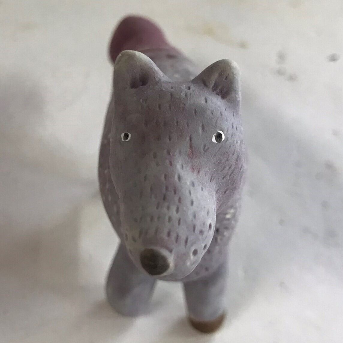 It is a porcelain wolf figurine. Because it is handmade, the shape and color of each item may differ slightly from the image. About 12 cm in length