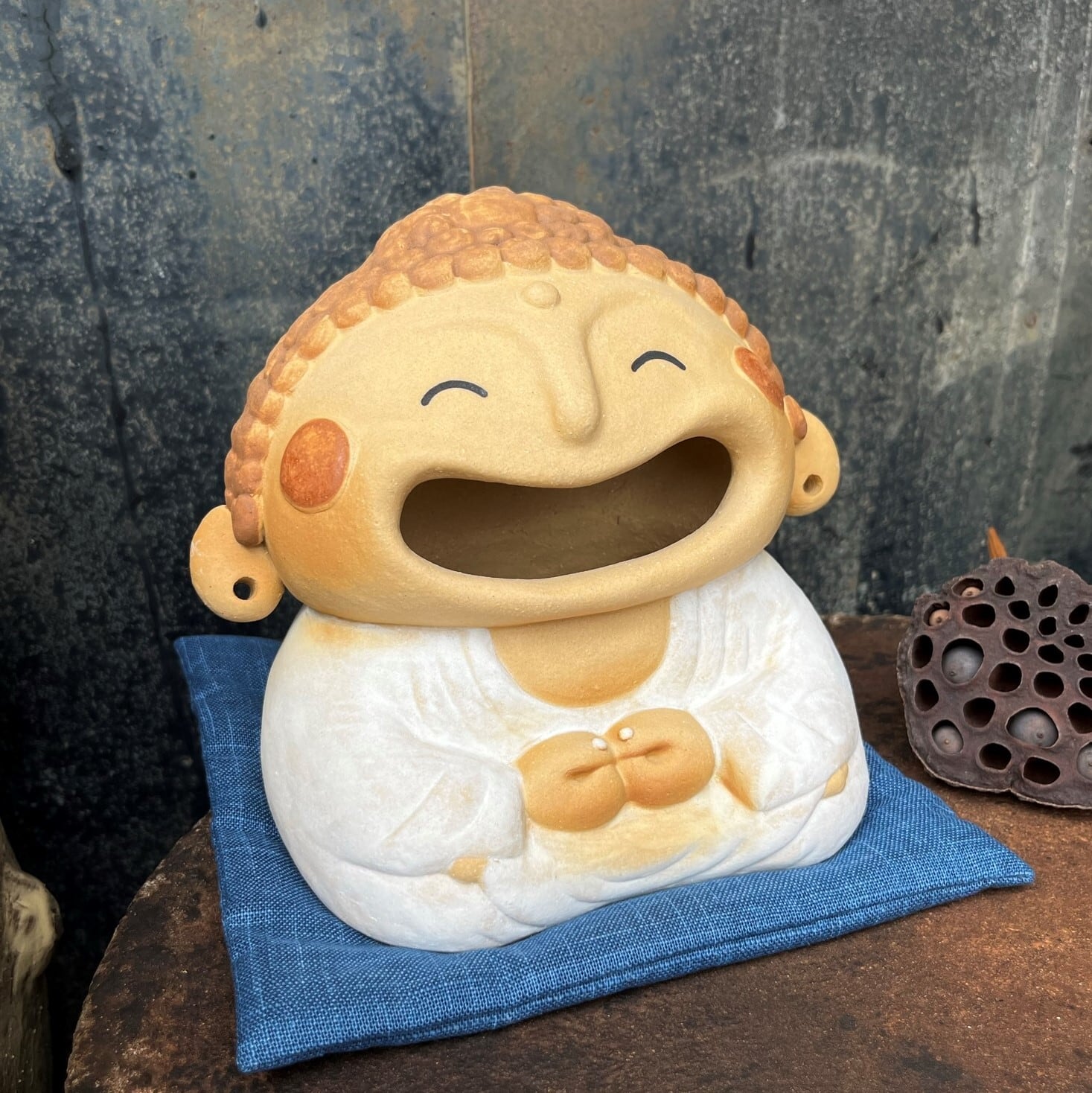 わっはっは大仏さん 座布団(中)付き O-254 陶製 /Big Buddha/大佛/Großer Buddha/महान बुद्ध