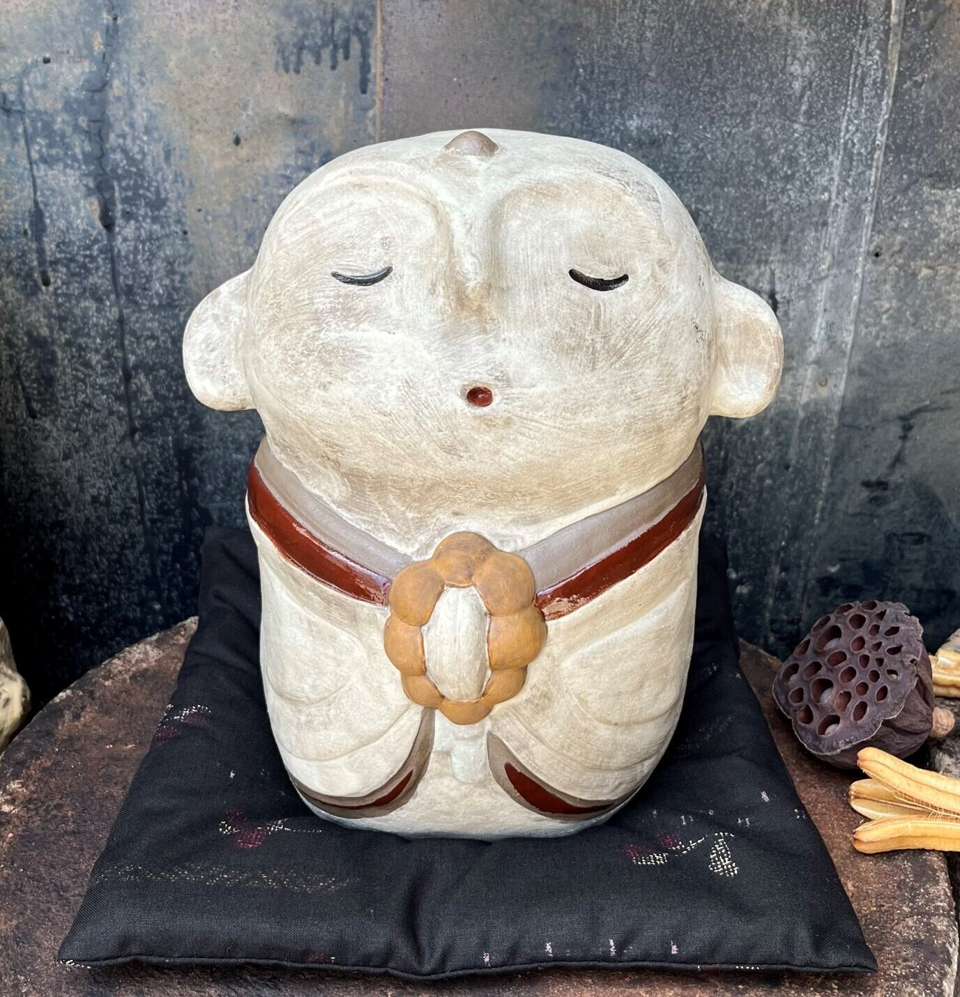 It is a figurine of Jizo made of ceramics. Because it is handmade, the shape and color of each item may differ slightly from the image. It was