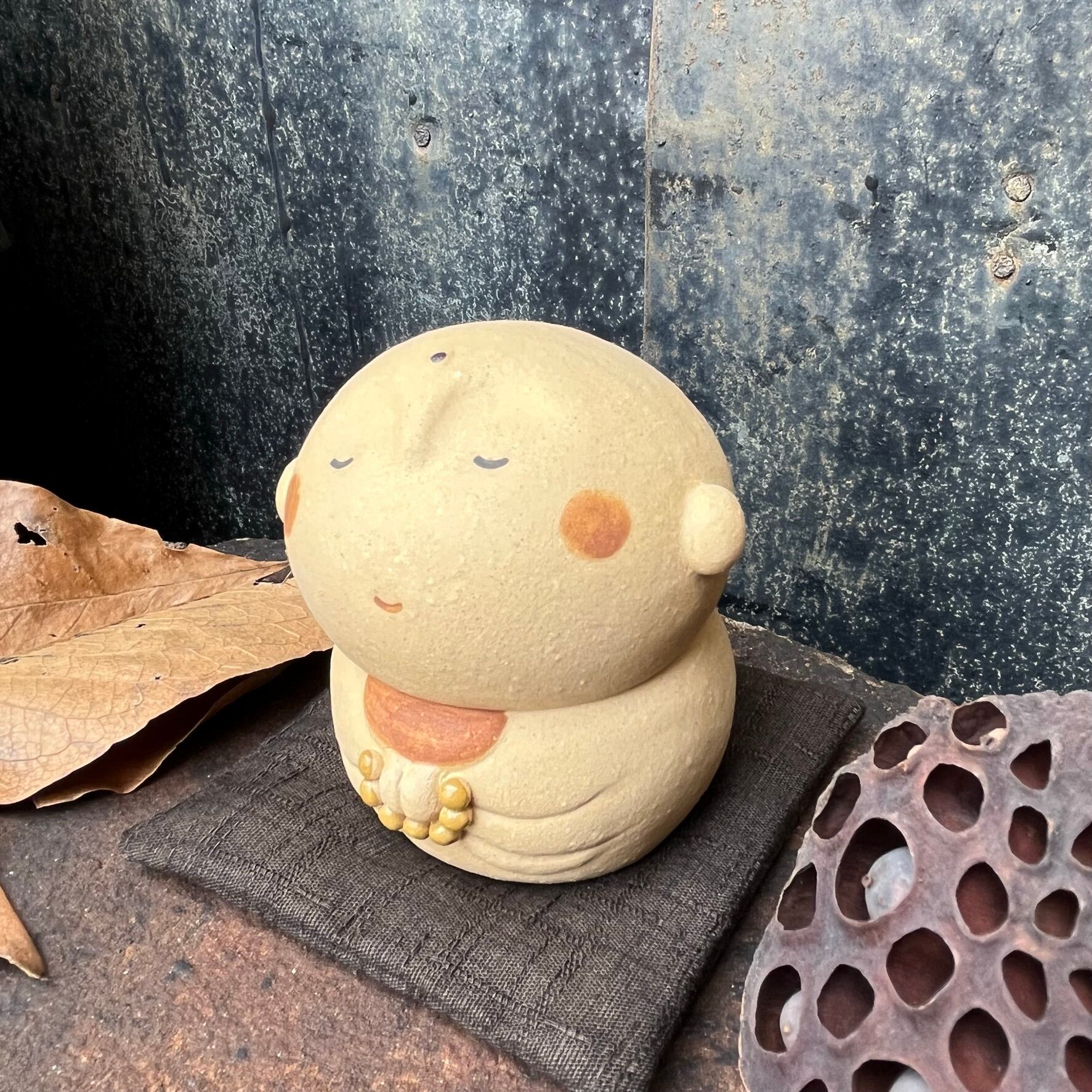 It is a figurine of Jizo made of ceramics. Because it is handmade, the shape and color of each item may differ slightly from the image. It was
