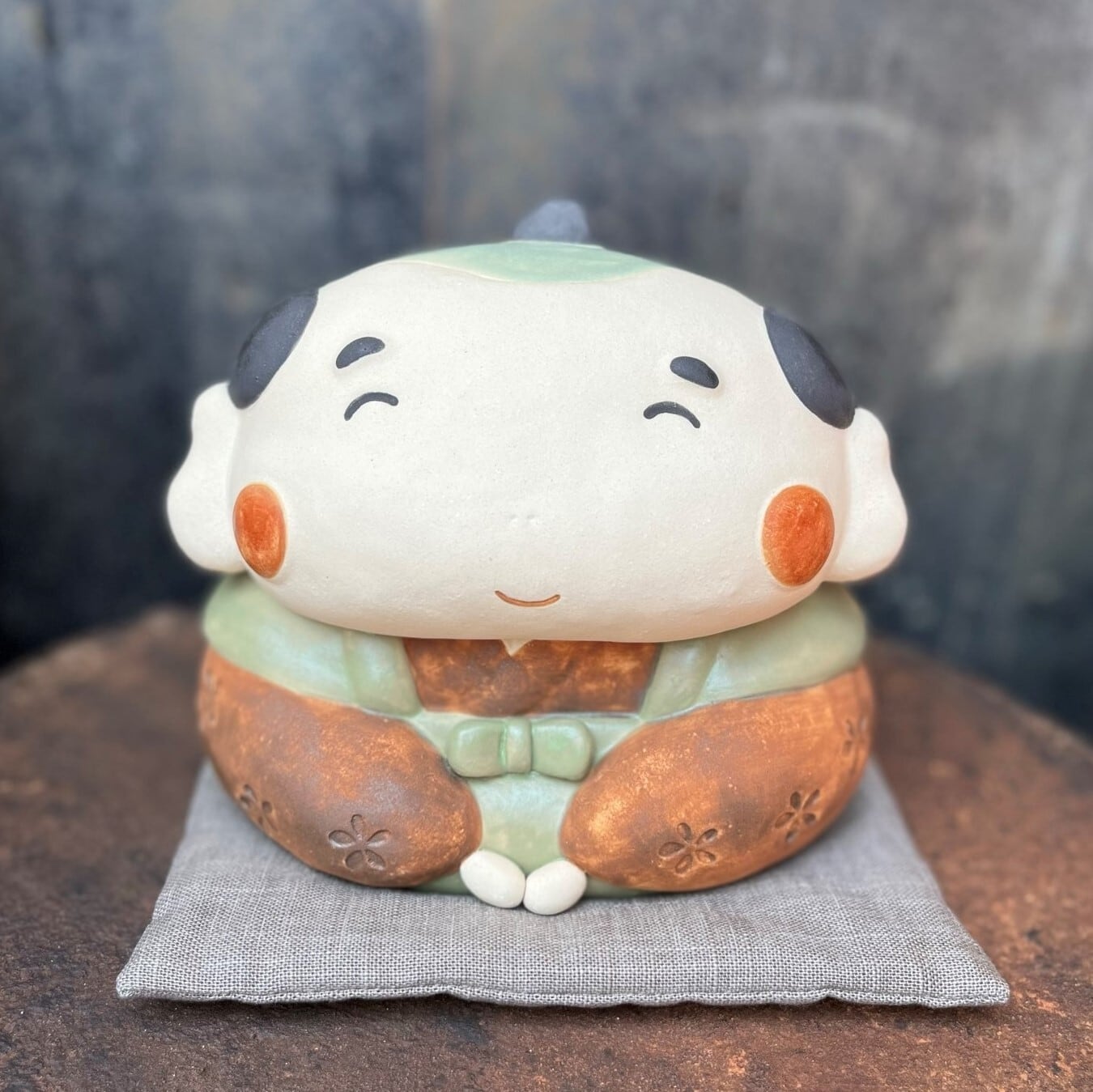 にこにこ福助さん 座布団(中)付き O-224 陶製/Fukusuke/福助/फुकुसुके