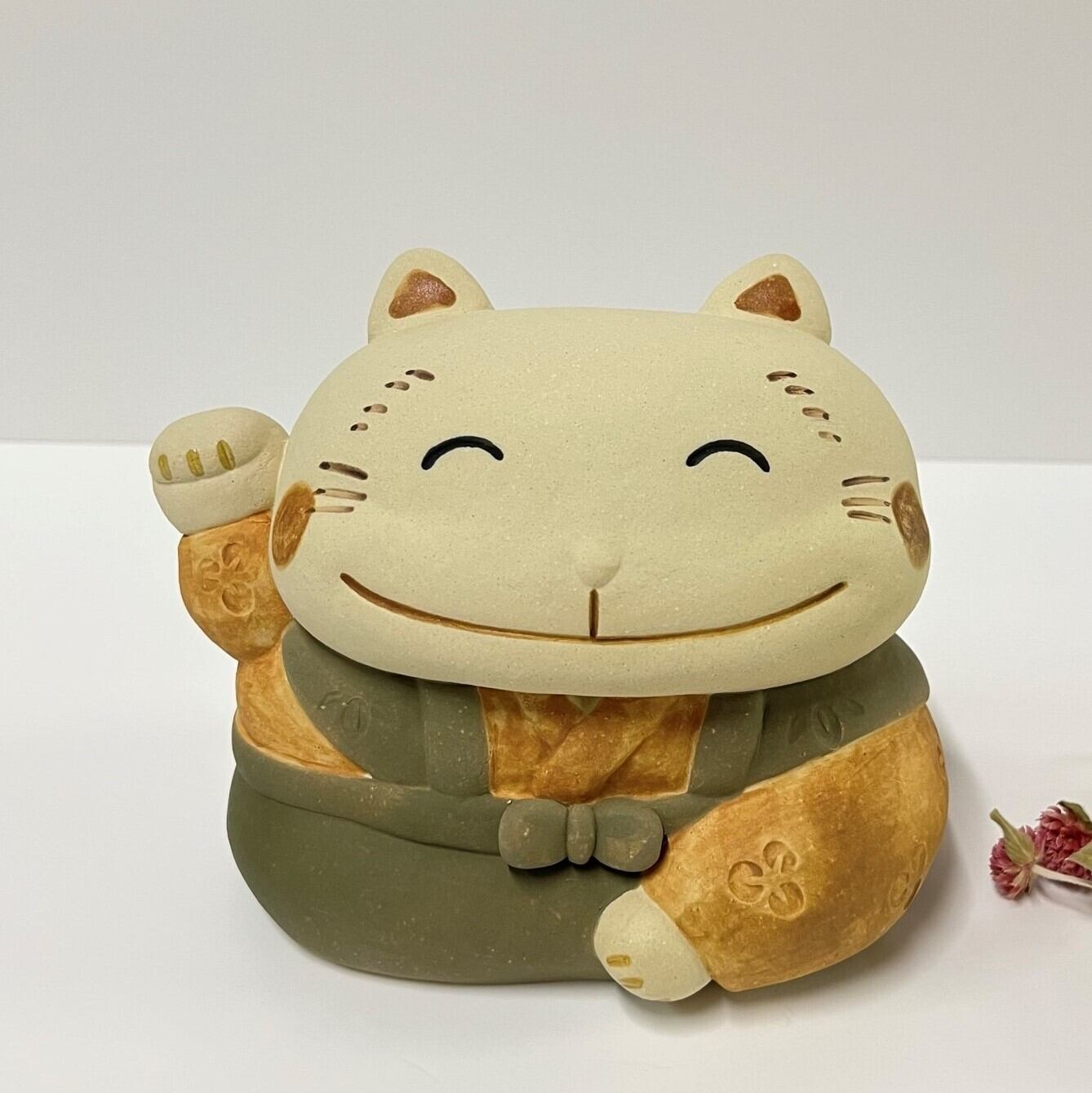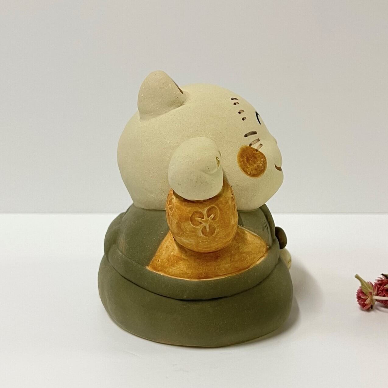 陶製招財貓福助先生的手辦。 由於是手工製作,每件商品的形狀和顏色可能與圖片略有不同。 它是