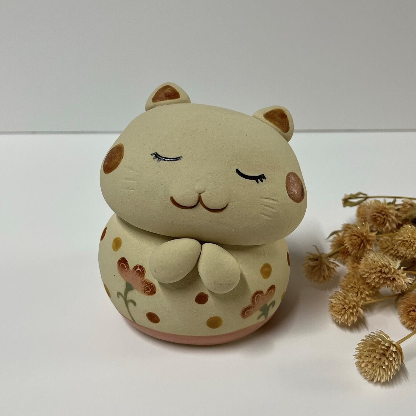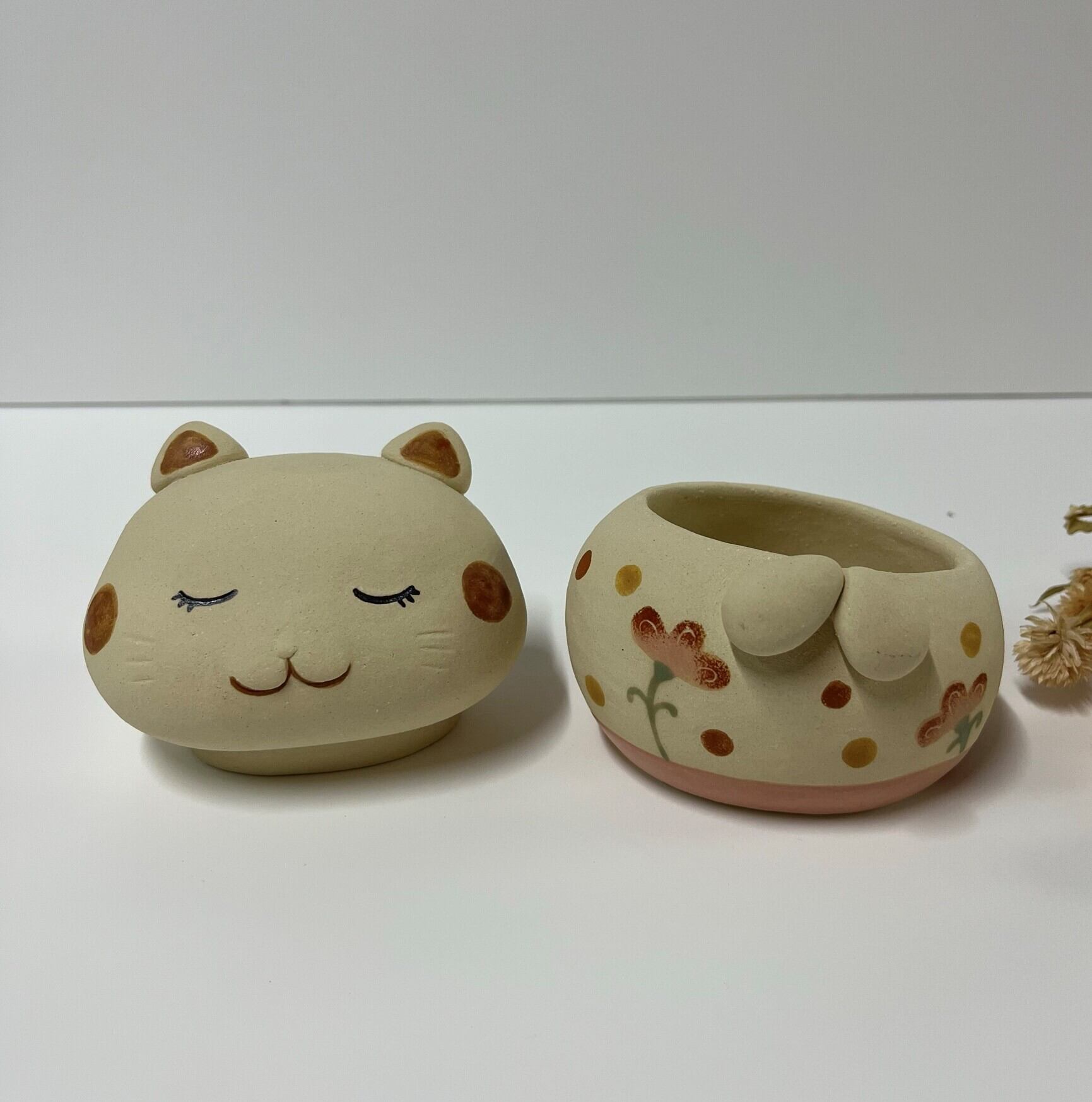 This is a pottery cat accessory case. Because it is handmade, each item may differ slightly in shape, color, etc. from the image.