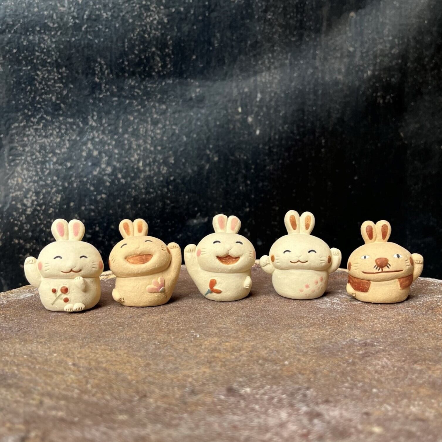 陶製のうさぎの置物です。手作りの為、1点1点 形、色などが画像と多少違いがあります。