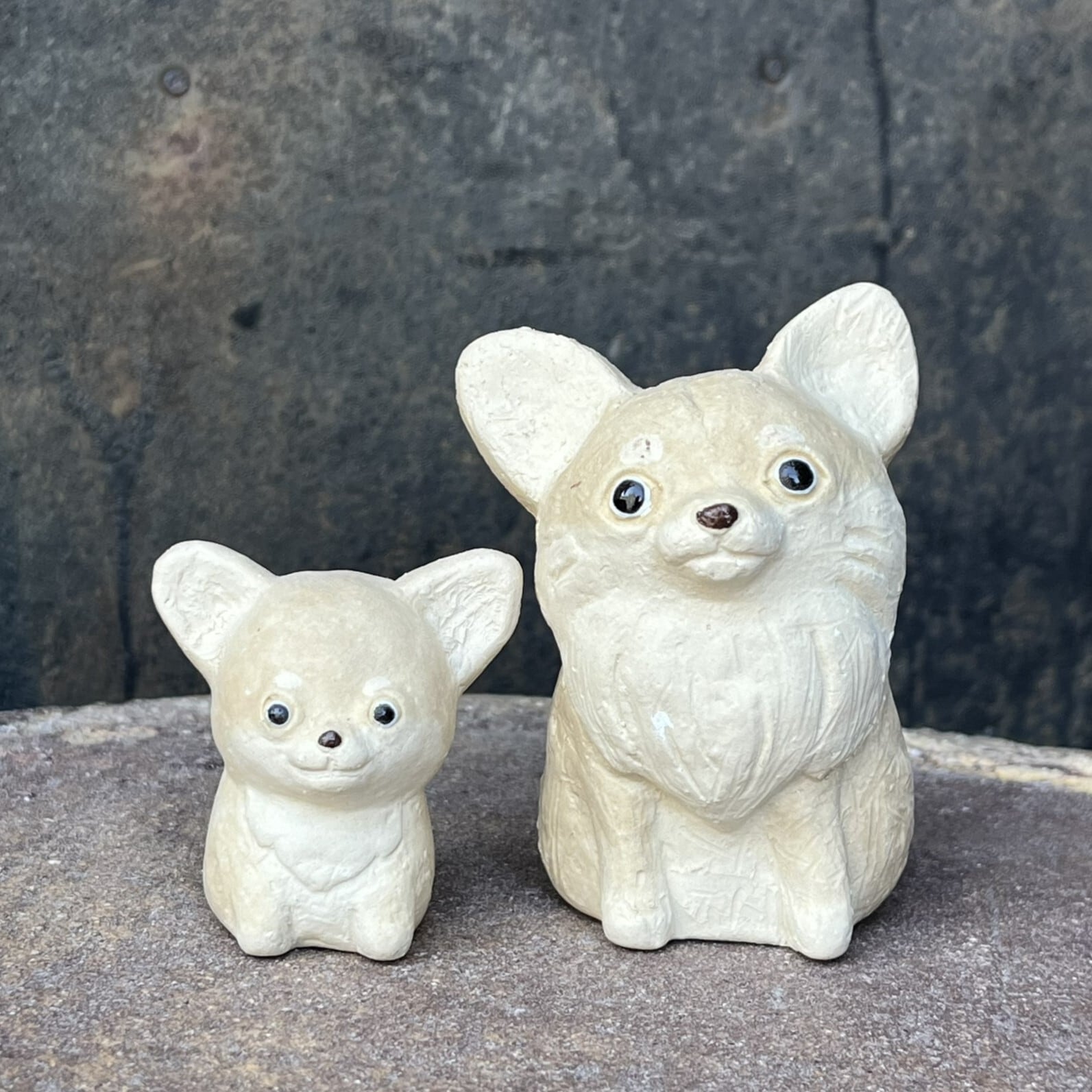 This is a ceramic Chihuahua figurine. As each item is handmade, the shape, color, etc. may vary slightly from the image.