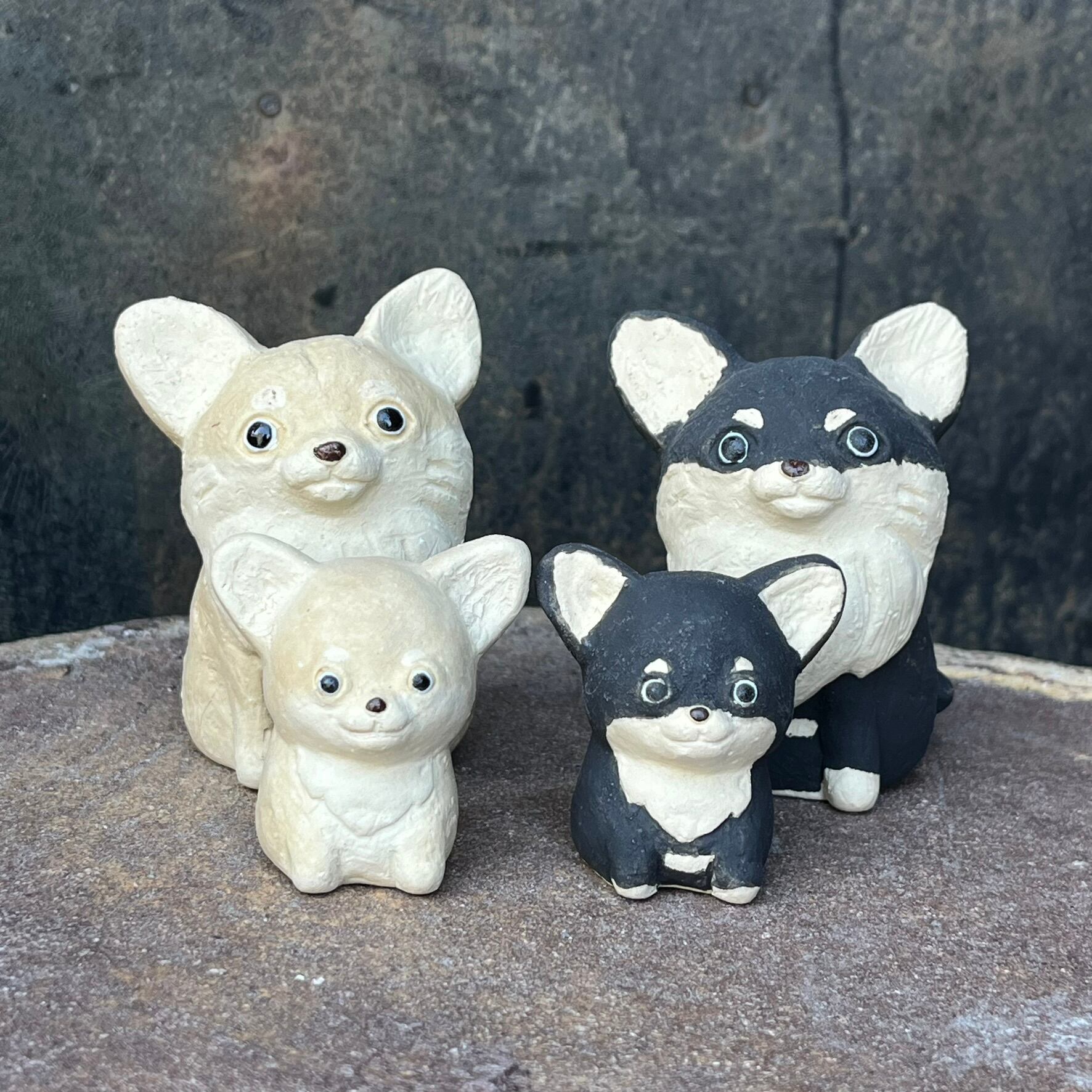 陶製のチワワの置物です。手作りの為、1点1点 形、色などが画像と多少違いがあります。