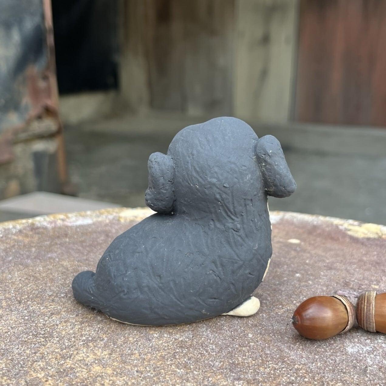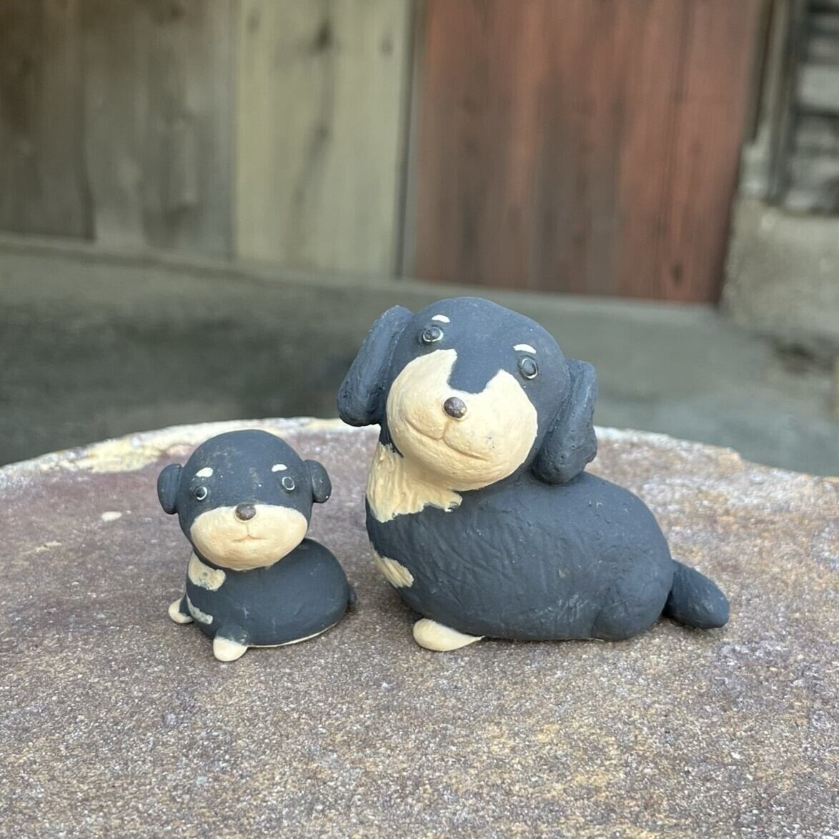 陶製のミニチュアダックスフンドの置物です。手作りの為、1点1点 形、色などが画像と多少違いがあります。