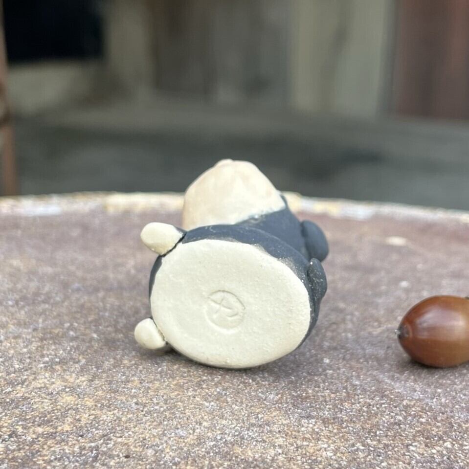 A miniature ceramic dachshund figurine. As each item is handmade, the shape, color, etc. may vary slightly from the image.
