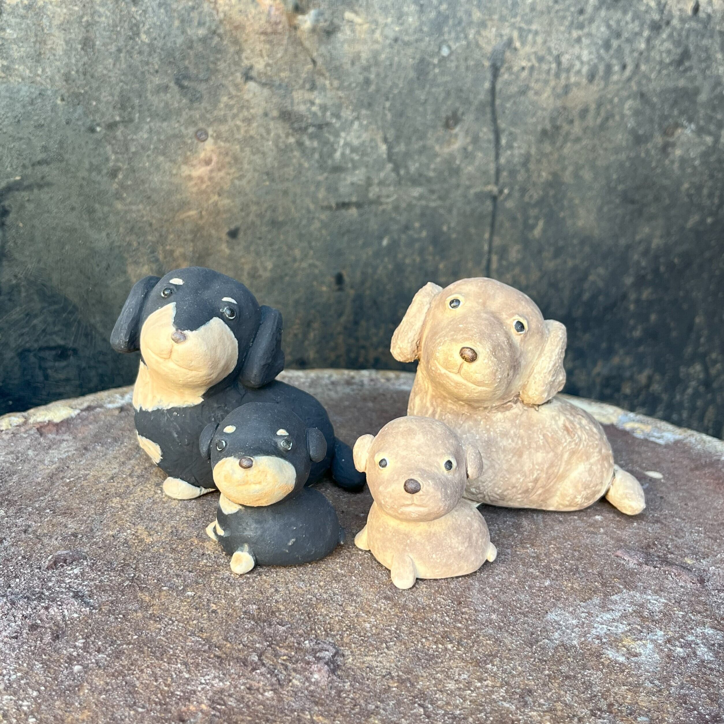陶製のミニチュアダックスフンドの置物です。手作りの為、1点1点 形、色などが画像と多少違いがあります。