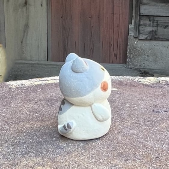 It is a figurine of a ceramic beckoning cat. Because it is handmade, the shape and color of each item may differ slightly from the image.