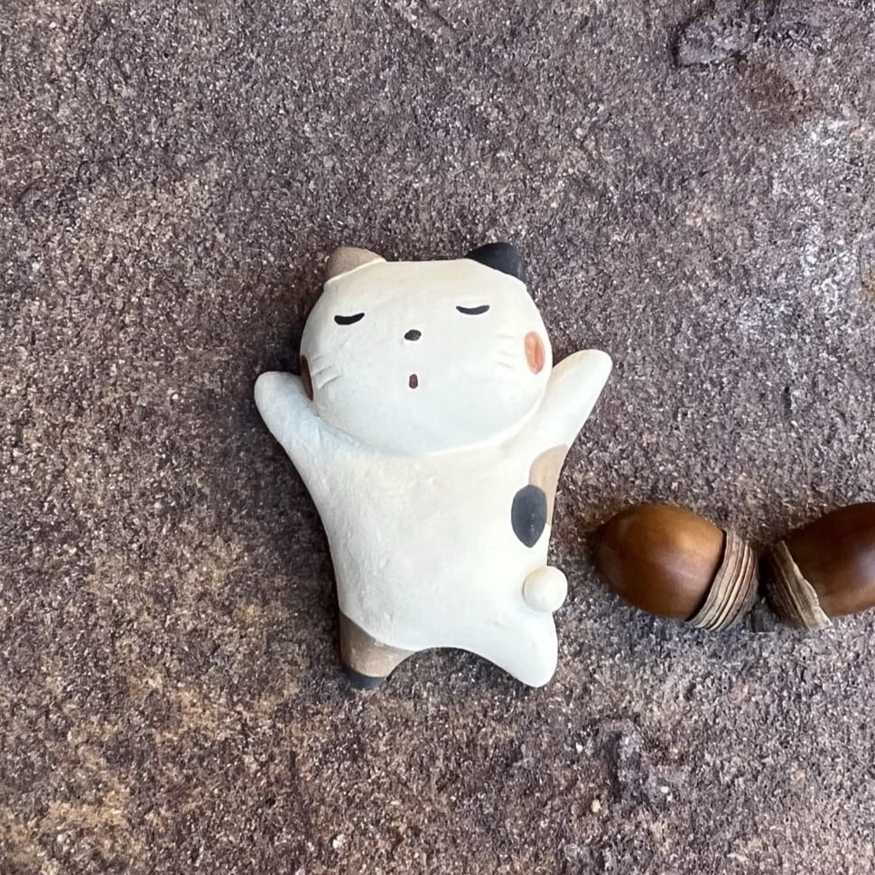 A ceramic cat figurine. As each item is handmade, the shape, color, etc. may vary slightly from the image.