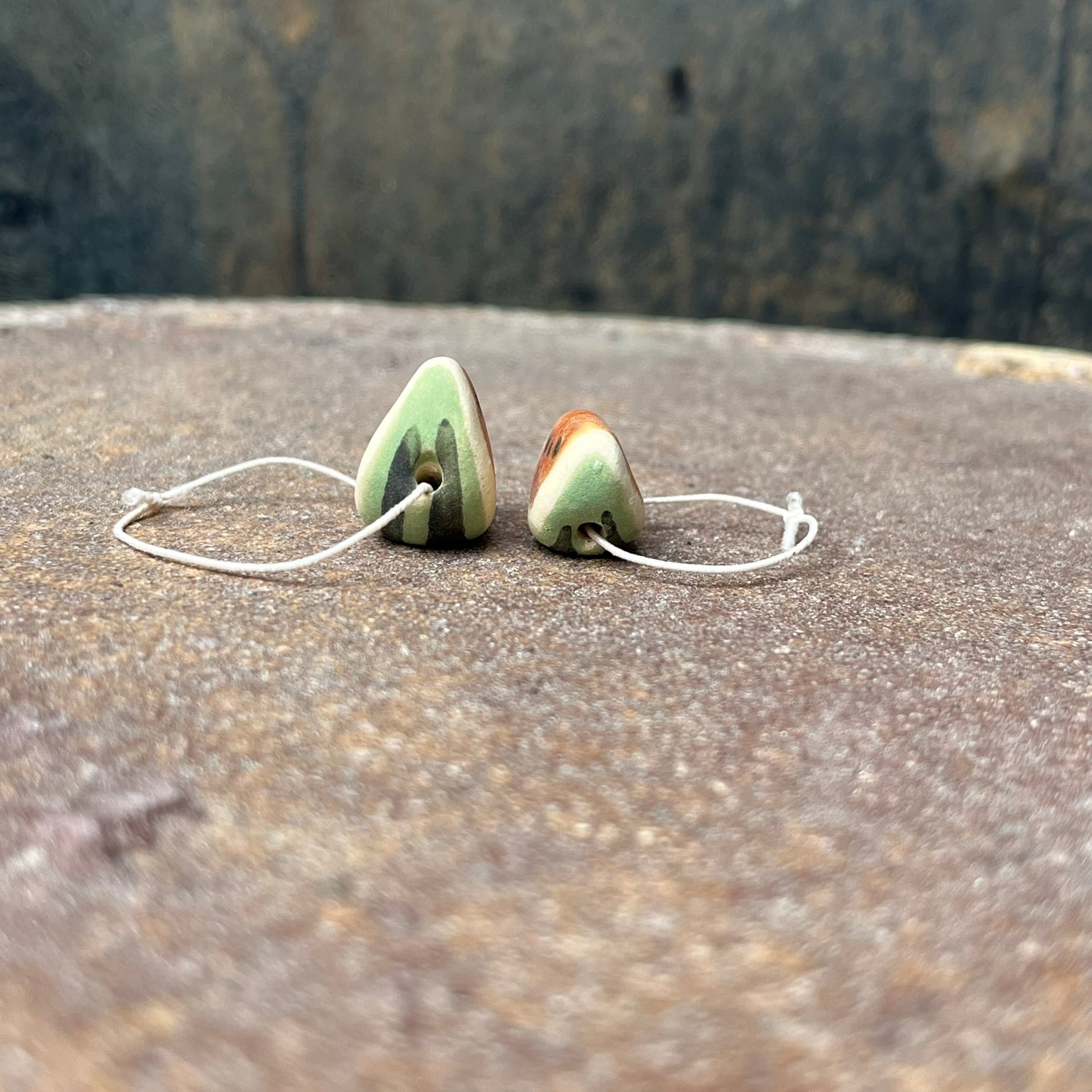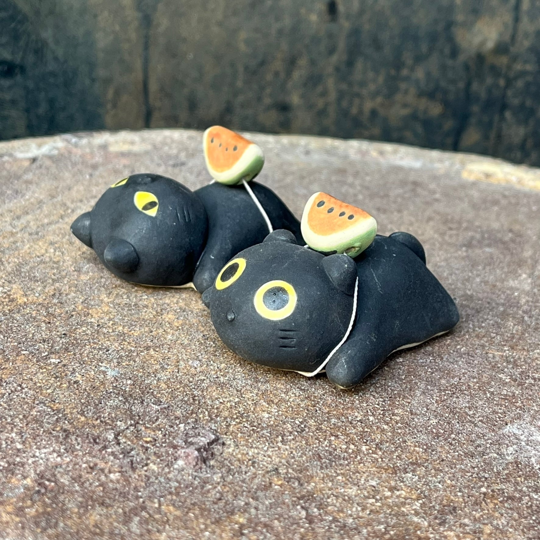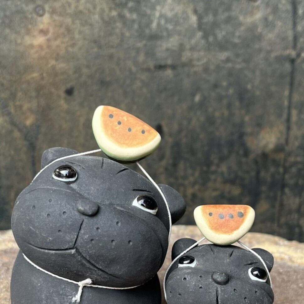 陶製の載せるすいかの置物です。手作りの為、1点1点 形、色などが画像と多少違いがあります。