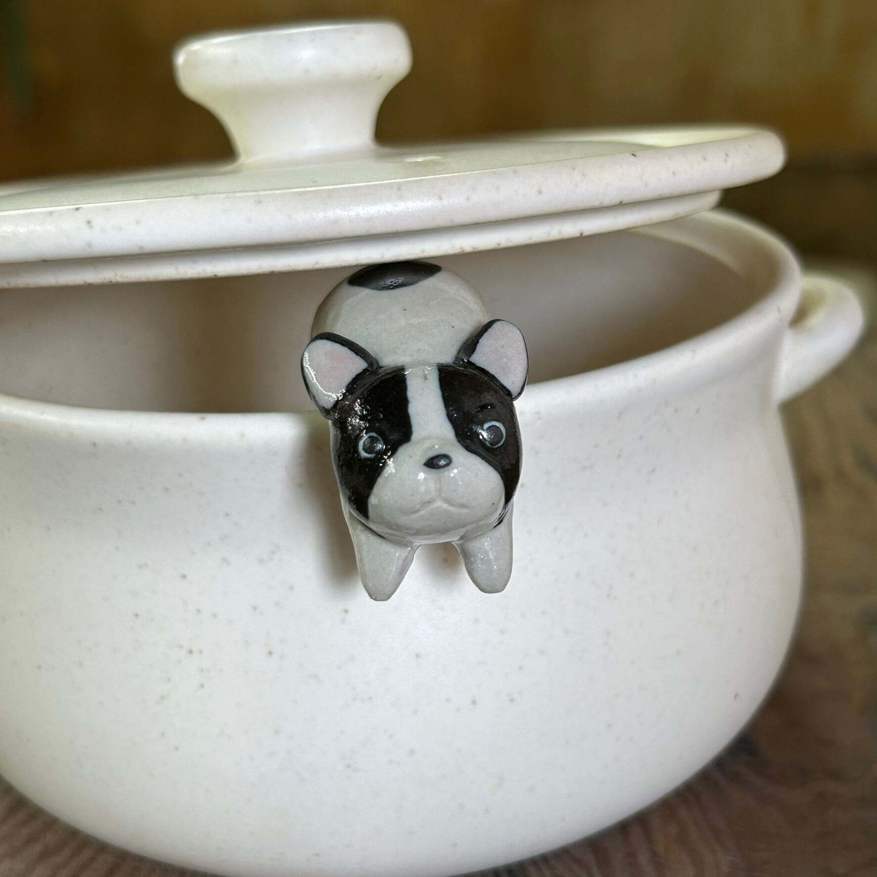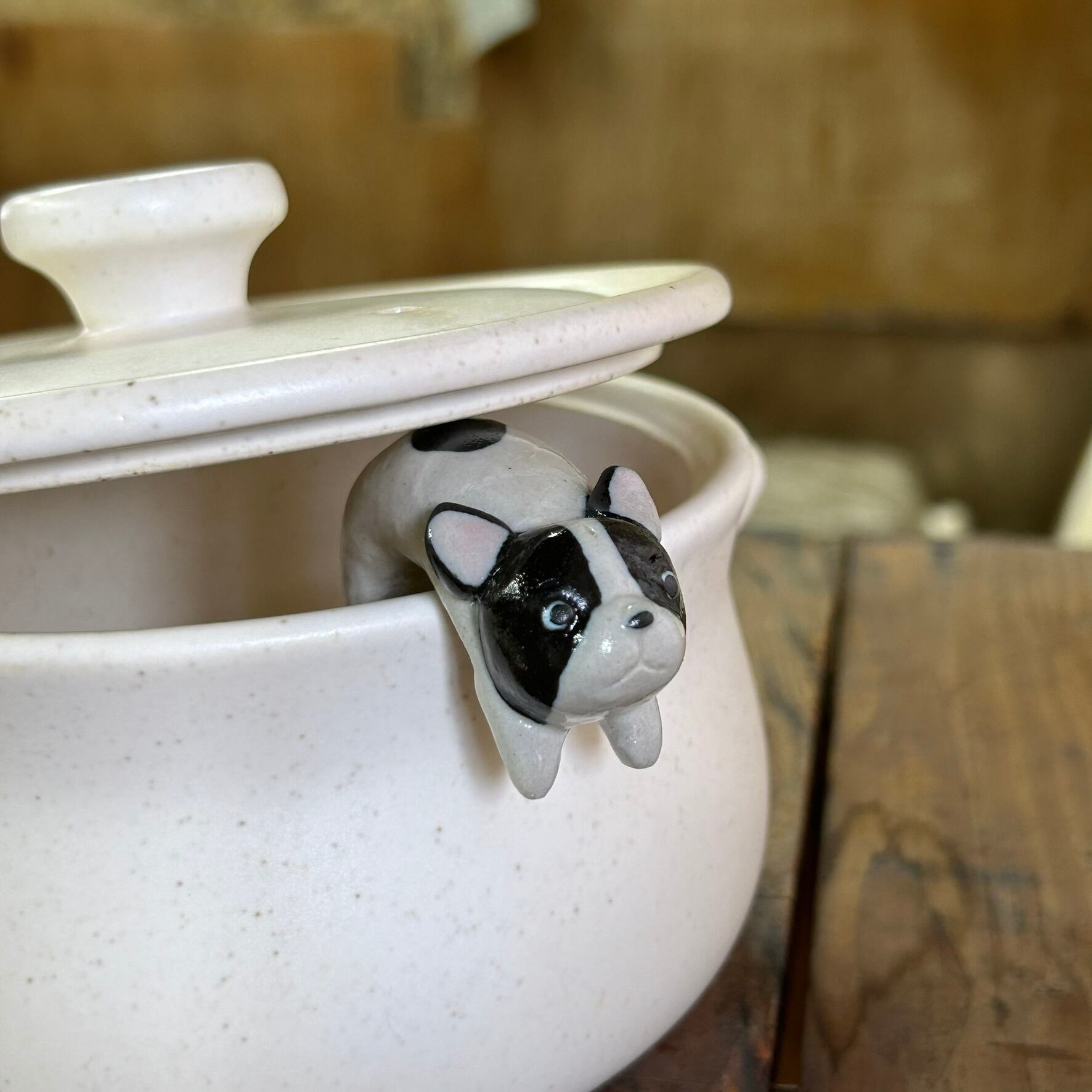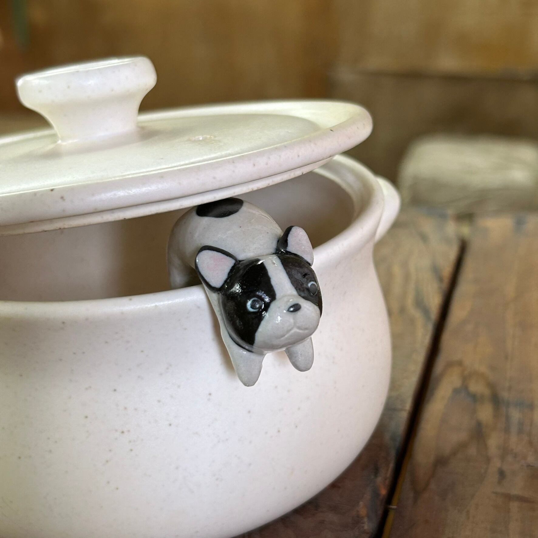 ポットウォッチャー(鍋の吹きこぼれ防止)(フレンチブルドッグ パイド)S-139-A 陶製/ いぬ/dog