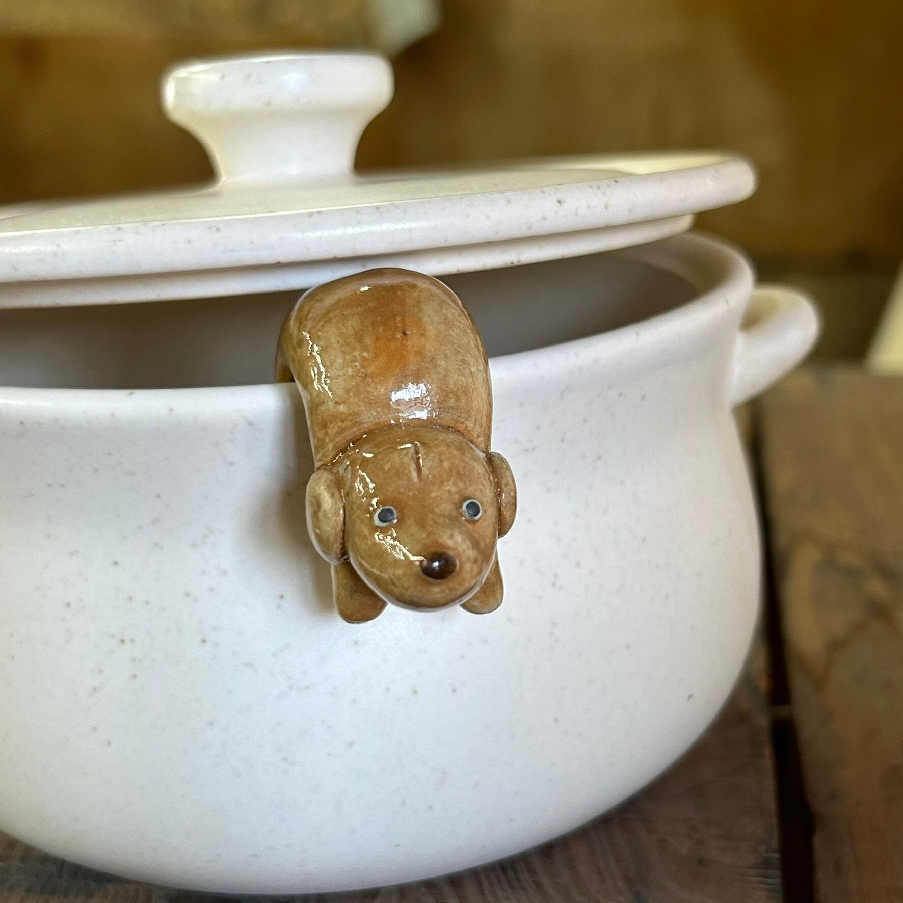 ポットウォッチャー(鍋の吹きこぼれ防止)(ミニチュアダックス レッド)S-138-A 陶製/ いぬ/dog