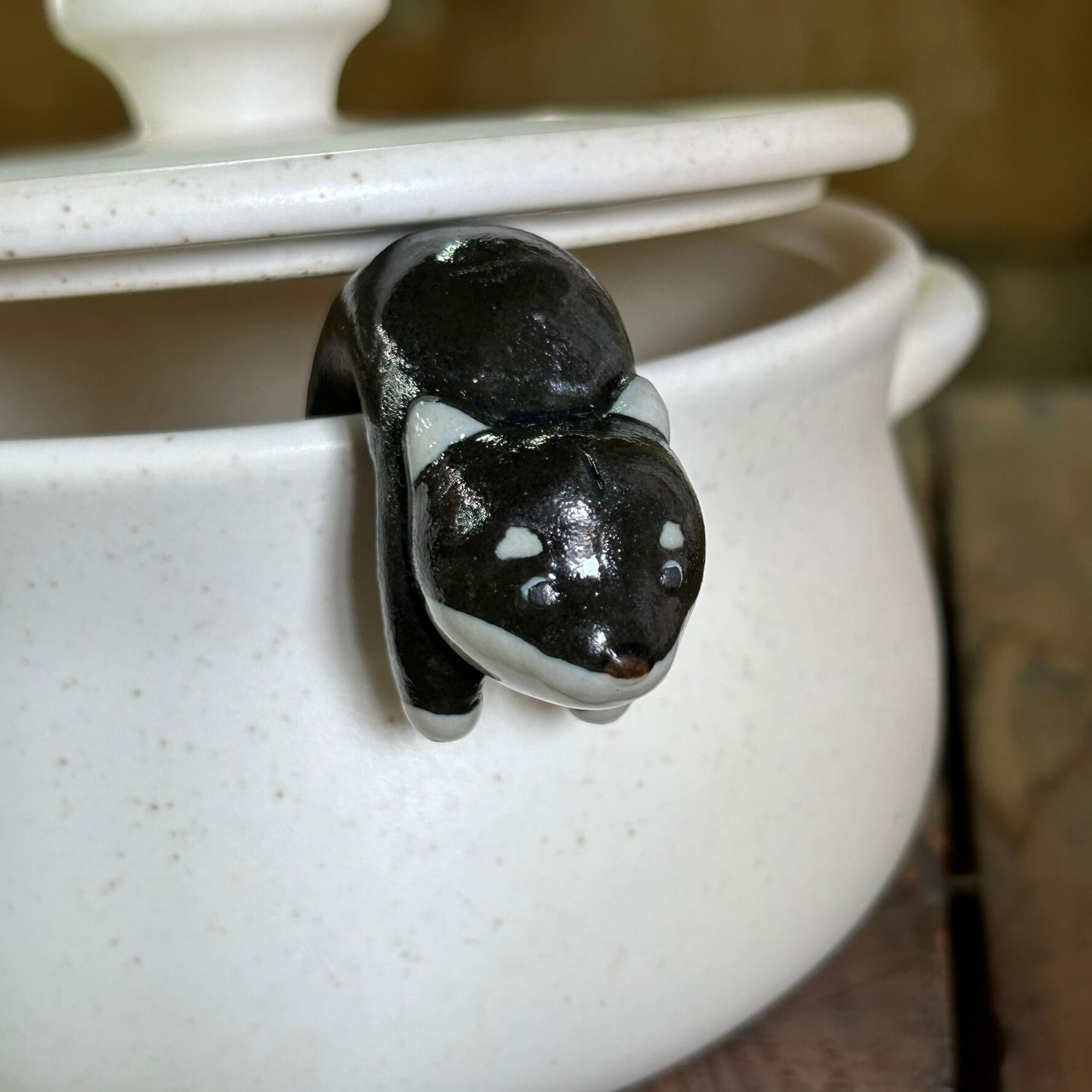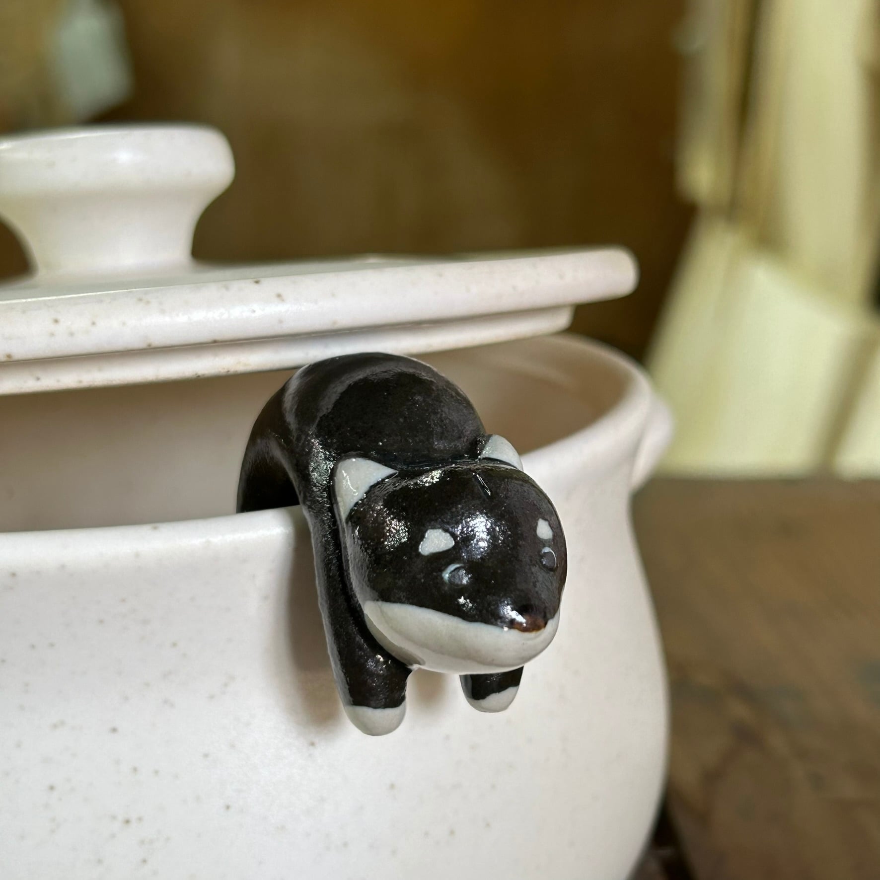 ポットウォッチャー(鍋の吹きこぼれ防止)(柴犬 黒)S-136-B 陶製/ いぬ/dog/狗/Hund