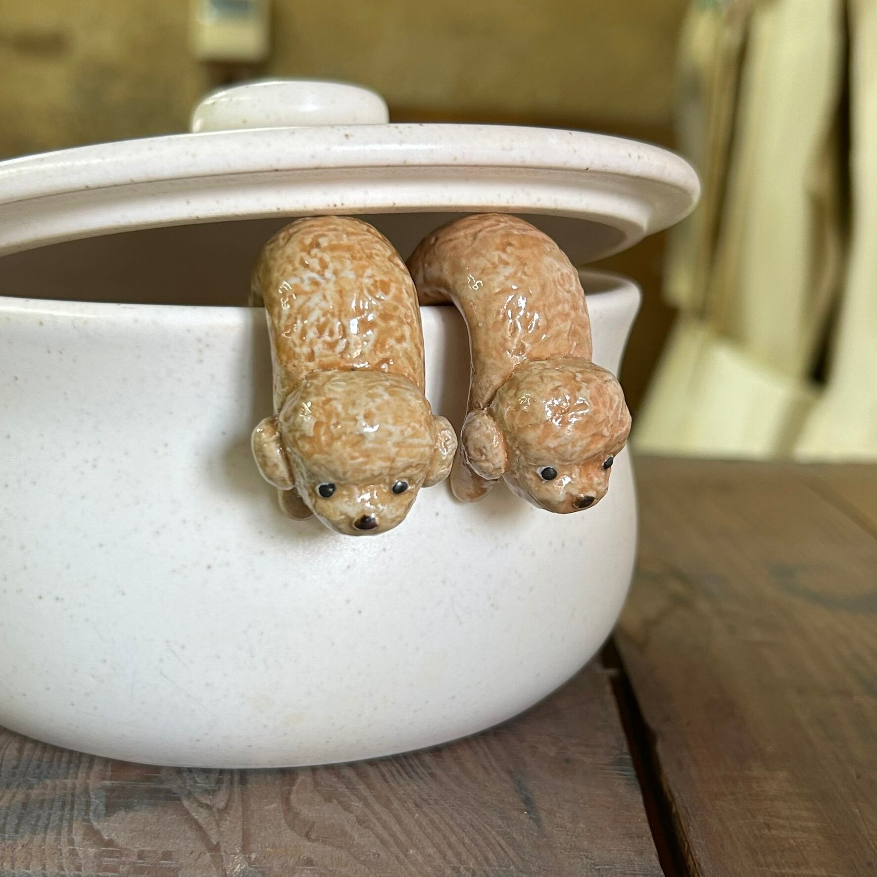 ポットウォッチャー(鍋の吹きこぼれ防止)(トイプードル アプリコット)S-135-B 陶製/ いぬ/dog/狗/Hund