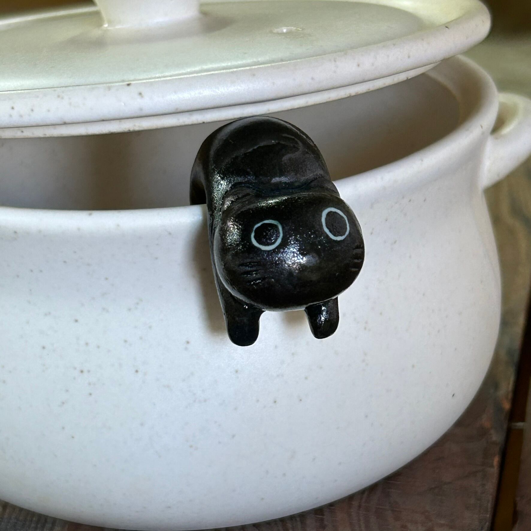 ポットウォッチャー (鍋の吹きこぼれ防止)(ねこ クロ)S-134-D 陶製/ ねこ